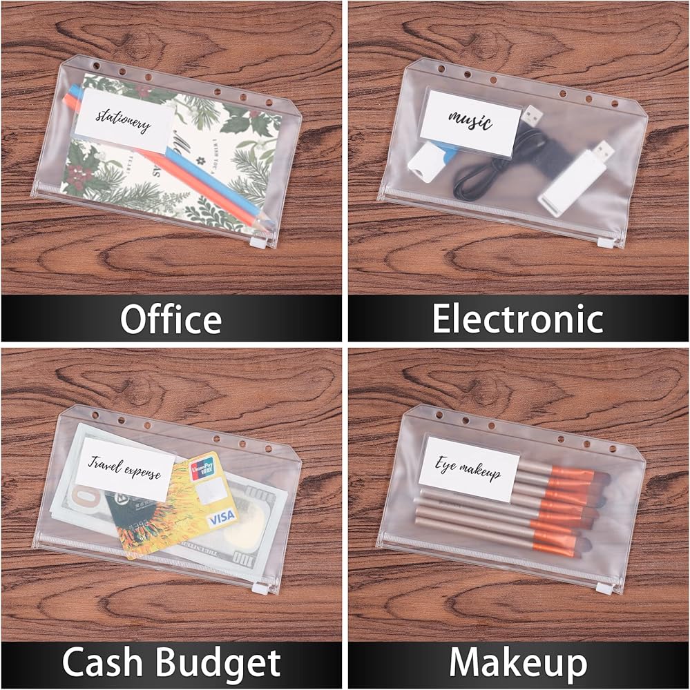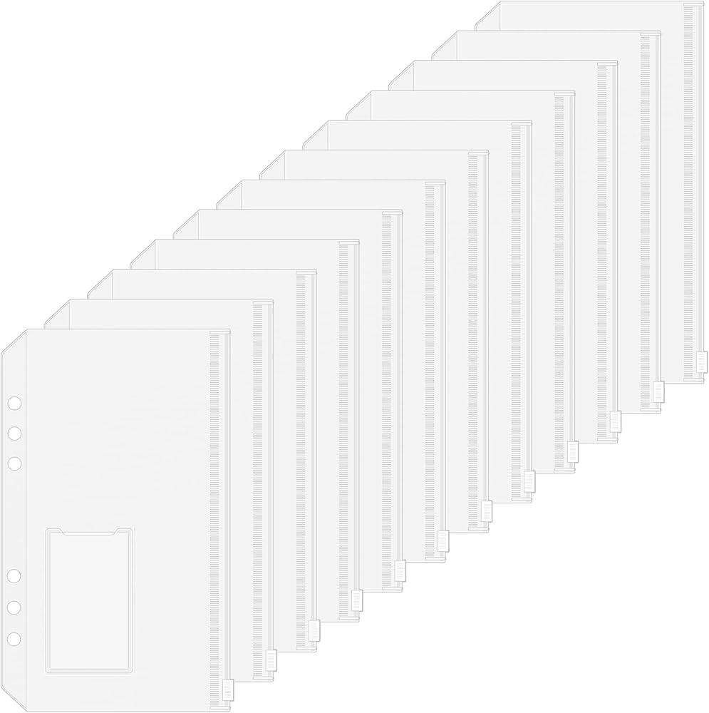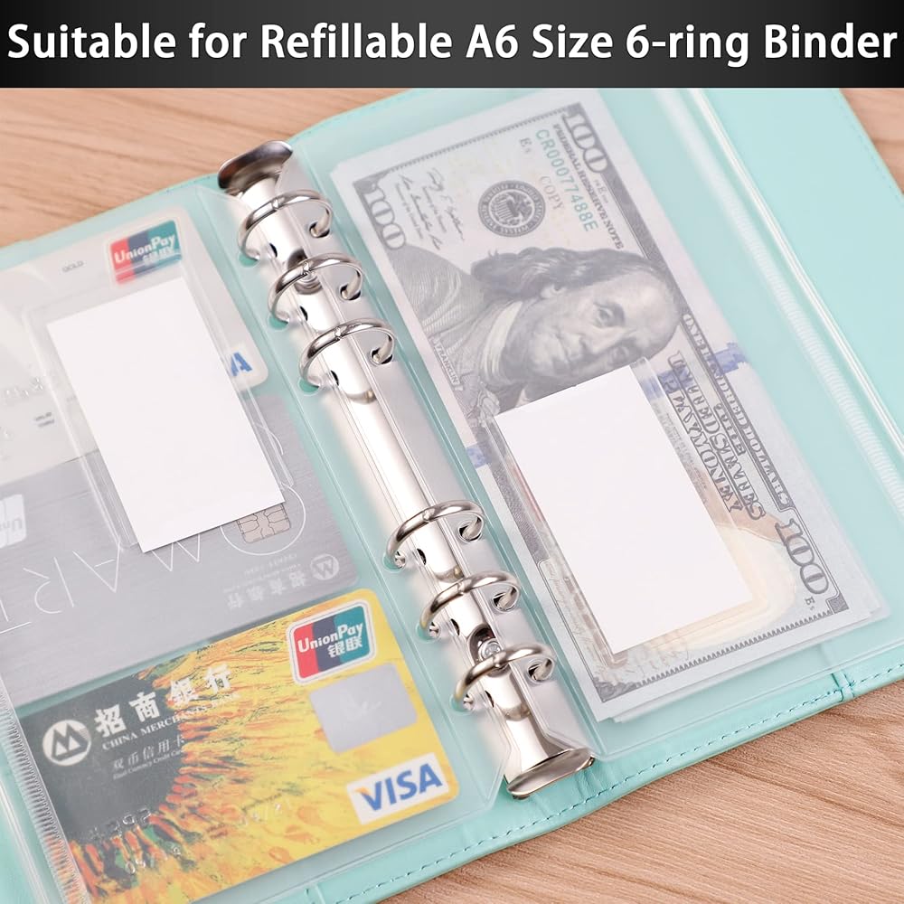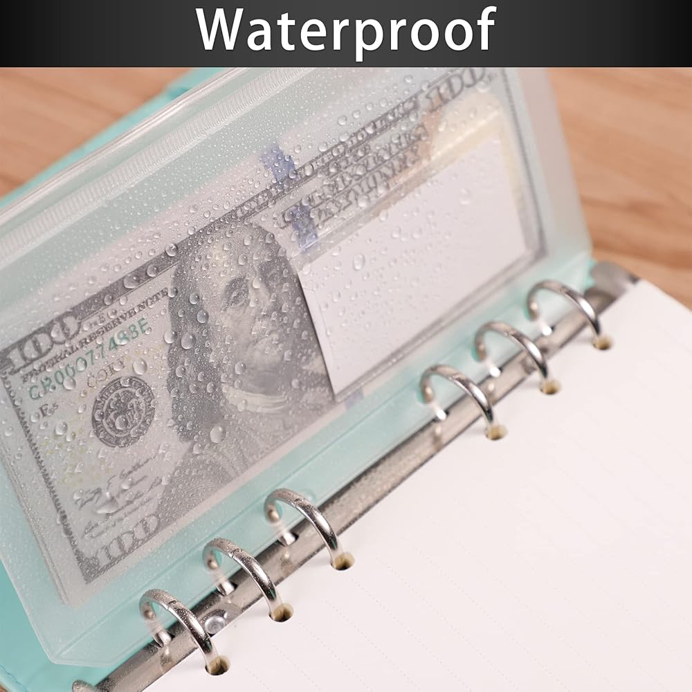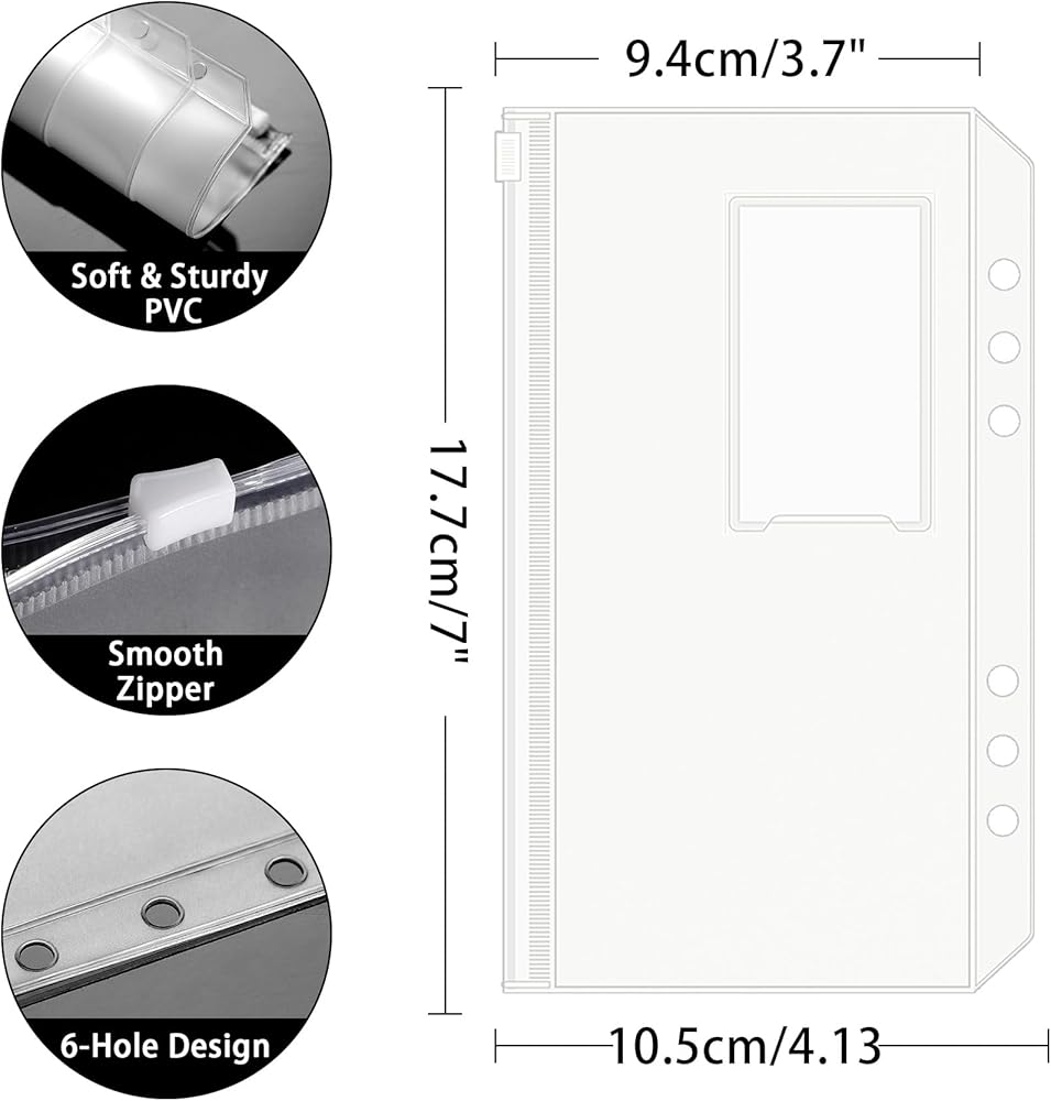 12 قطعة من HAUTOCO جيوب مجلدة بحجم A6 مع جيب للملصق، ومغلفات نقدية من البولي فينيل كلوريد لوضع الميزانية، وأظرف شفافة بسحاب ذات 6 فتحات لتوفير النقود، وأكياس مجلدة مقاومة للماء لحافظة أجهزة الكمبيوتر المحمولة ذات 6 حلقات مقاس A6