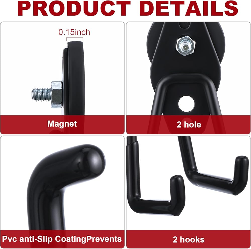 Landhoow 4 قطع خطافات مغناطيسية شديدة التحمل كبيرة الحجم خطافات مغناطيسية للمرآب أداة تخزين قوية خطافات مغناطيسية مع طلاء مطاطي مضاد للانزلاق للتعليق الداخلي والخارجي (أسود)