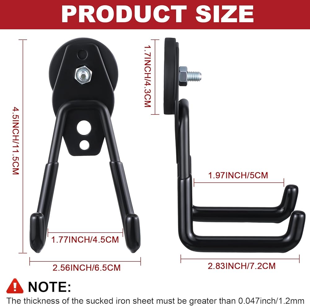 سهلة التركيب: لا حاجة لاستخدام أي أدوات، ولن تكسر الخطافات المغناطيسية السطح؛ يمكن وضع الخطافات المغناطيسية البرتقالية مباشرة على السطح المعدني؛ يرجى ملاحظة أن سمك صفائح الحديد الممتصة يجب أن يكون أكثر سمكًا من 0.047 بوصة/1.2 مم؛ وإلا فإن الخطاف المغناطيسي سوف ينزلق