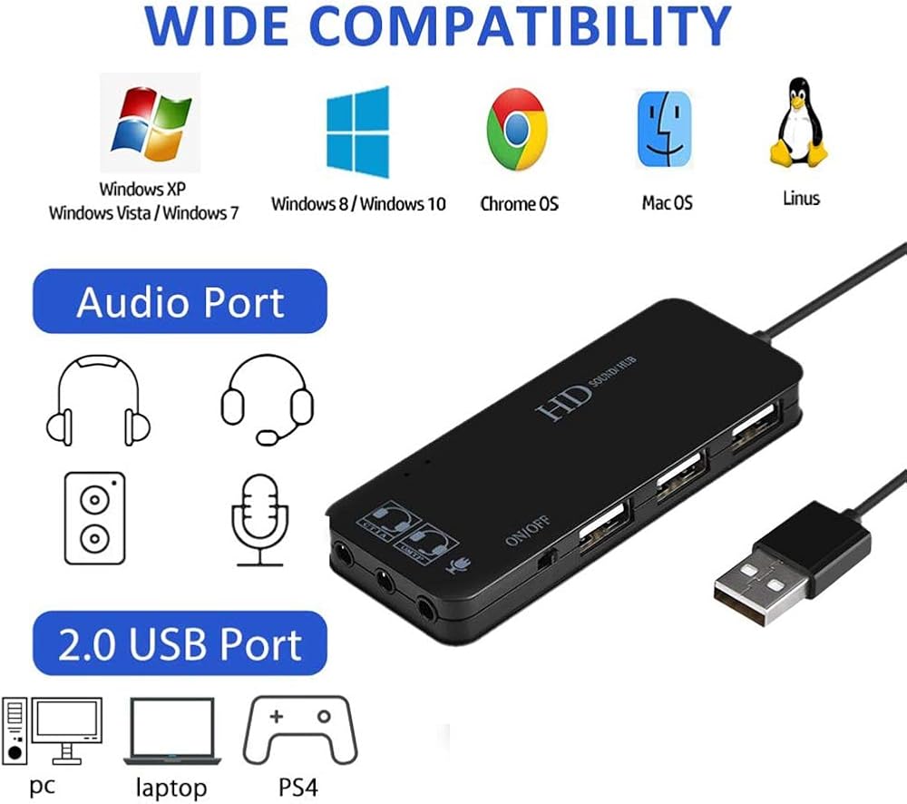 بطاقة صوت ستيريو خارجية بمحول USB Hub 3.1 مع مقبس سماعة رأس وميكروفون مقاس 3.5 مم لأجهزة Windows وMac وLinux والكمبيوتر الشخصي وأجهزة الكمبيوتر المحمولة وأجهزة الكمبيوتر المكتبية وأجهزة PS4 الإصدار الجديد من USB خارجي للكمبيوتر باللون الرمادي