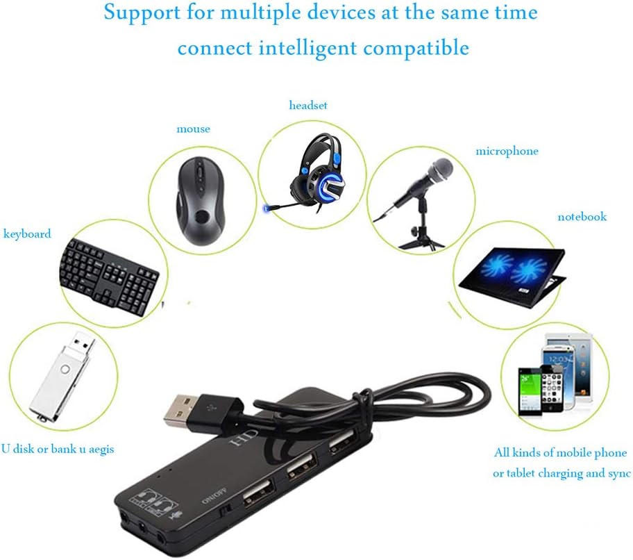 ✄ بطاقة صوت خارجية: تحتوي بطاقة الصوت الخارجية على شريحة صوت خاصة بها، ويمكنها تحويل منفذ USB واحد إلى عدة منافذ 3.5 مم، لذلك يمكن توصيل أجهزة صوت 3.5 مم مثل سماعات الرأس وسماعات الرأس ومكبرات الصوت والميكروفون وما إلى ذلك. تدعم قابسًا واحدًا وسماعات رأس مزدوجة التوصيل وفي الوقت نفسه، لا حاجة لمحول