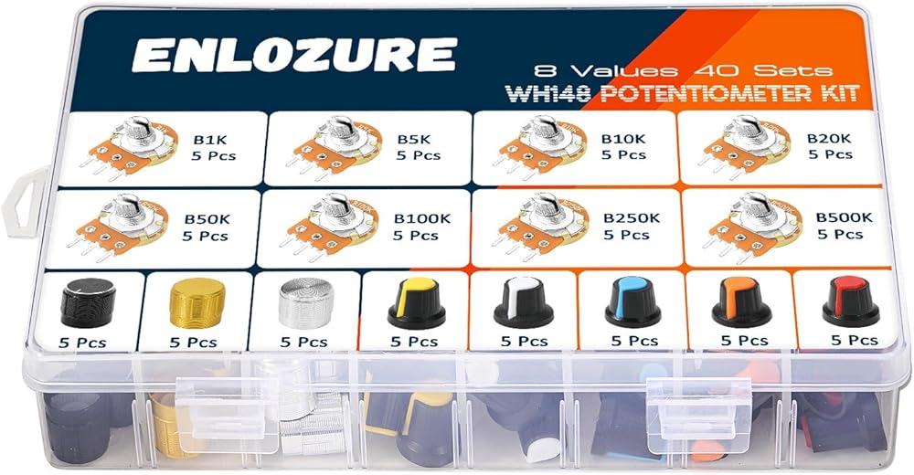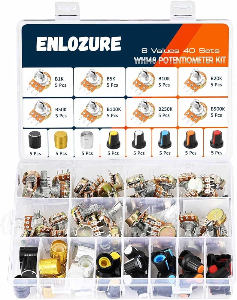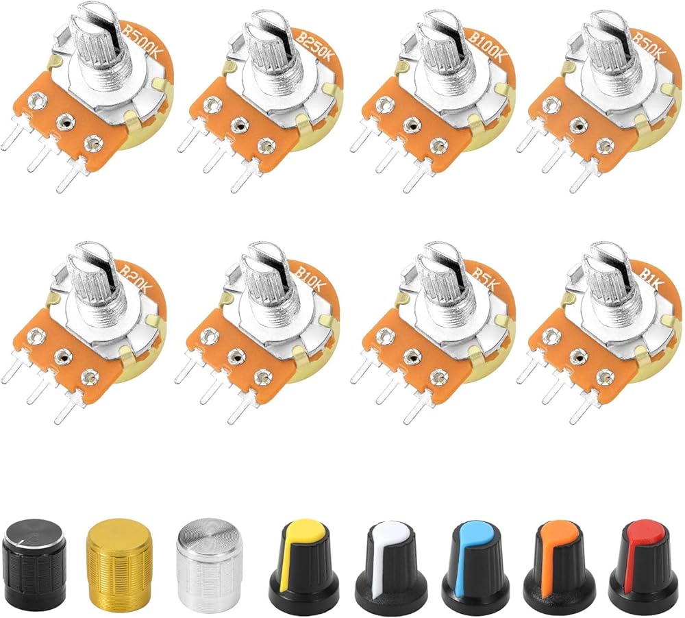 - 18-مقياس الجهد القيمة: 100Ω، 200Ω، 300Ω، 500Ω، 1KΩ، 2KΩ، 5KΩ، 10KΩ، 20KΩ، 30KΩ، 47KΩ، 50KΩ، 100KΩ، 200KΩ، 300KΩ، 500KΩ ، 1 ميجا أوم، 2 ميجا أوم.