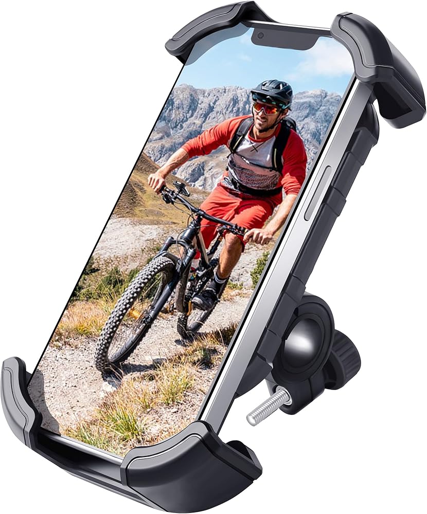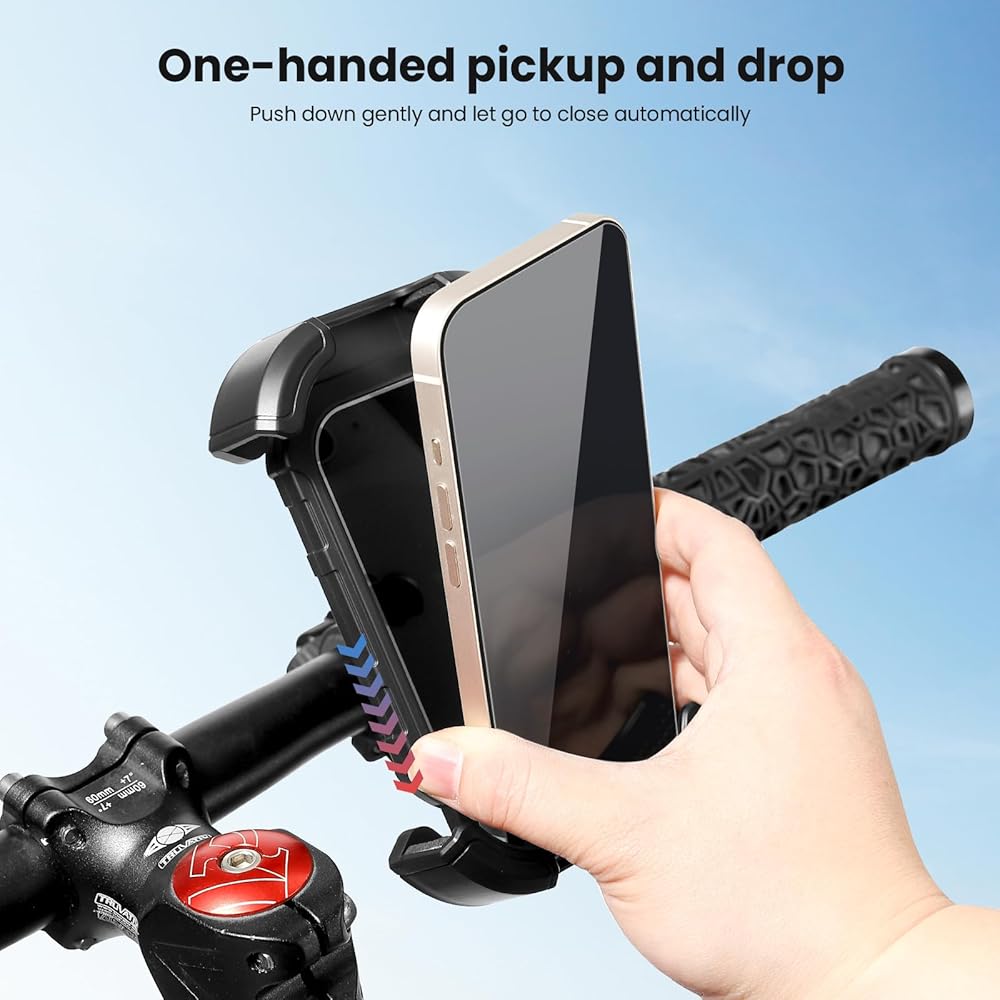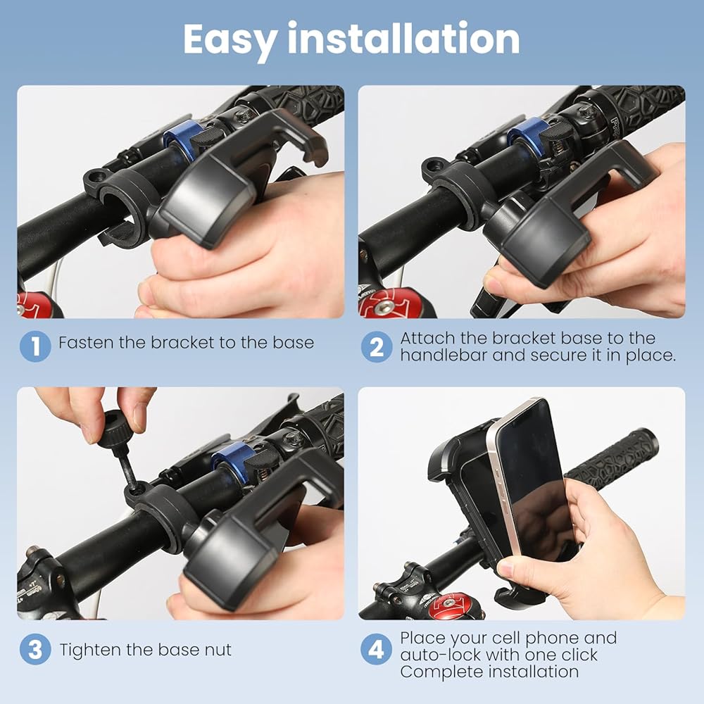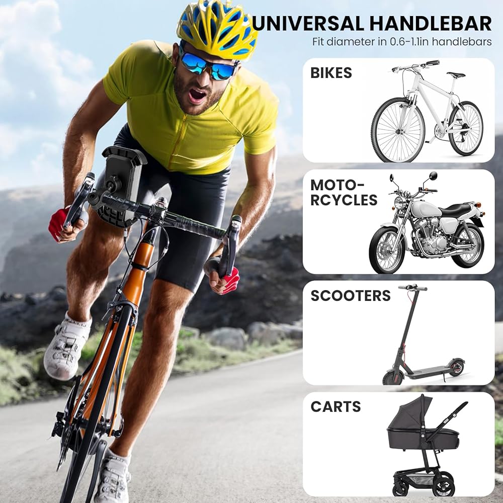 حامل هاتف للدراجة - حامل هاتف للدراجة النارية، دوران 360 درجة، قفل تلقائي، تركيب سريع، يعمل مع السكوتر وعربة الأطفال وما إلى ذلك وجميع الهواتف من 4.7 إلى 6.8 بوصة.