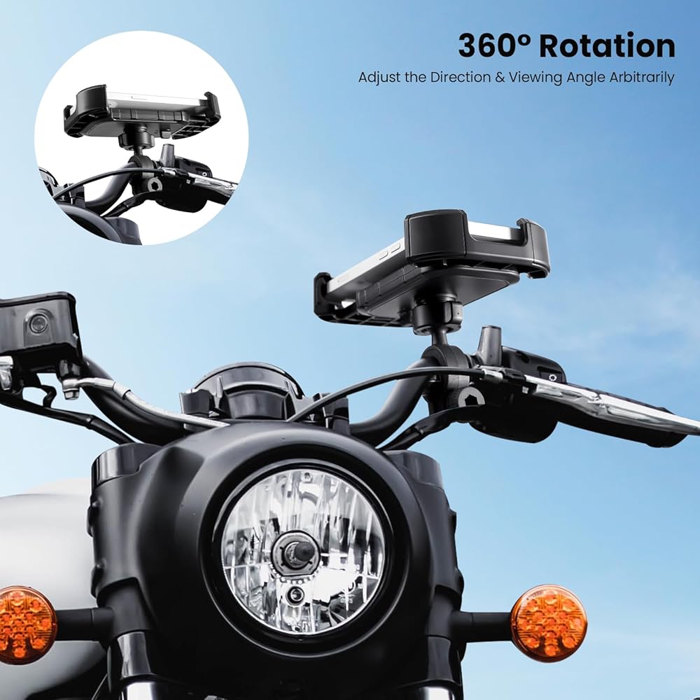 【𝐄𝐀𝐒𝐘 𝟑𝟔𝟎 𝐃𝐄𝐆𝐑𝐄𝐄 𝐑𝐎𝐓𝐀𝐓𝐈𝐎𝐍】: يتميز حامل الهاتف الخلوي بدوران سلس 360 درجة. يتيح لك ذلك توجيه هاتفك بسهولة إلى الموضع المطلوب أثناء الركوب. سواء كنت تفضل الاتجاه الرأسي أو الأفقي، يمكنك التبديل بسهولة بين الاثنين مع الحفاظ على رؤية واضحة لشاشة هاتفك.