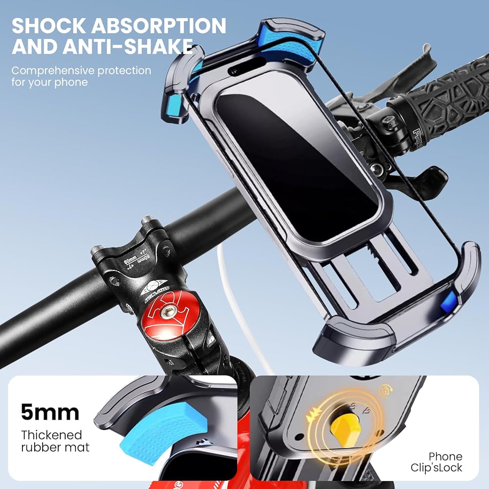【𝐄𝐗𝐂𝐄𝐋𝐋𝐄𝐍𝐓 𝐀𝐔𝐓𝐎𝐋𝐎𝐂𝐊𝐈𝐍𝐆 𝐃𝐄𝐕𝐈𝐂𝐄】: حامل الهاتف الخلوي للدراجة النارية الخاص بنا مجهز بقفل تلقائي متطور + نظام القفل القسري. فهو يضمن تثبيت هاتفك الخلوي في مكانه بشكل آمن حتى أثناء الرحلات الأكثر وعورة أو عند تعرضه لصدمات غير متوقعة. مع هذا الجهاز، يمكنك تصفح واستخدام هاتفك دون القلق بشأن انزلاقه أو سقوطه.