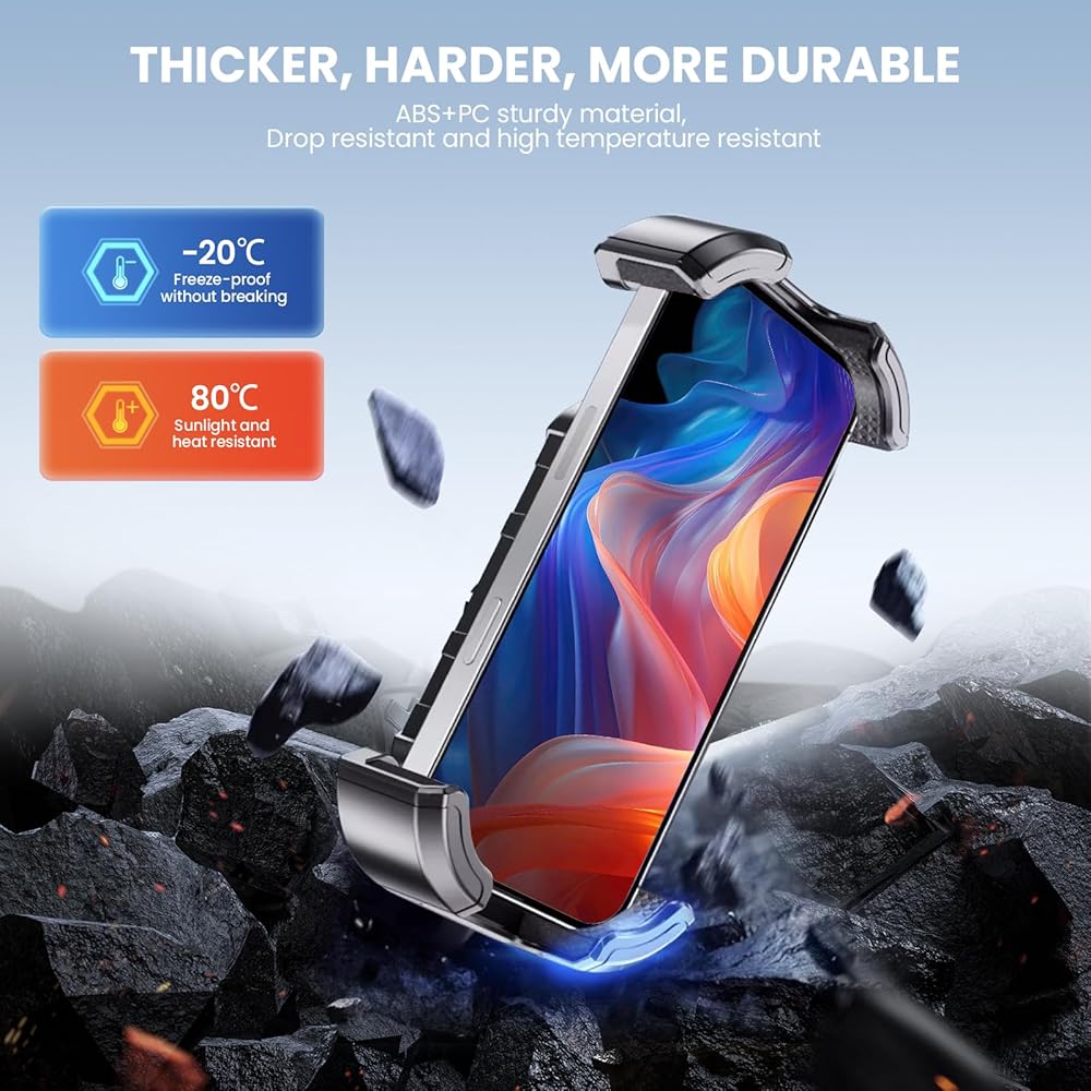 【𝐃𝐔𝐑𝐀𝐁𝐋𝐄】: حامل الهاتف الخلوي الخاص بنا مصنوع من مواد عالية الجودة ومتين للغاية. يمكنه تحمل الظروف الخارجية القاسية لضمان أداء موثوق به يدوم طويلاً، بالإضافة إلى وجود وسادات سيليكون إضافية في الزوايا الأربع لمنع هاتفك من الاهتزاز والخدوش. سواء كنت تقوم بالدراجة على أرض وعرة أو في ظروف جوية سيئة، فإن حامل الهاتف الخلوي الخاص بنا يضمن ثبات جهازك ويحميه.