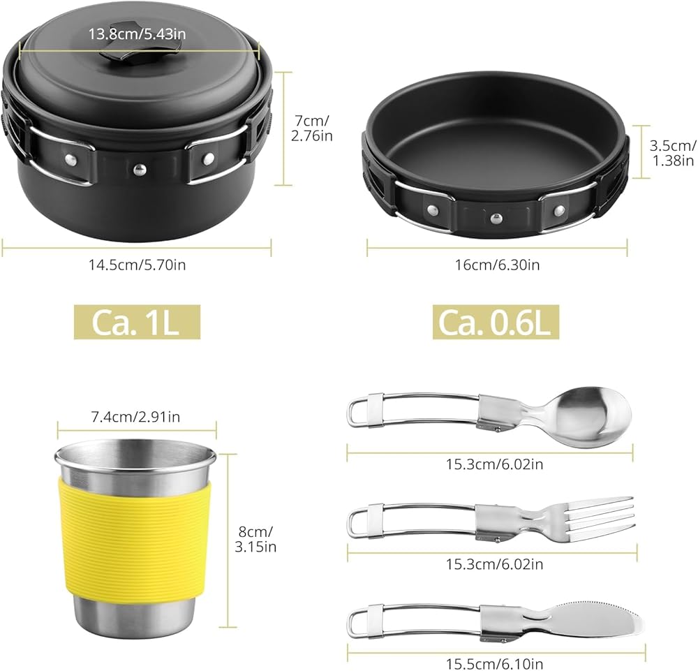 • 【استمتع بالطهي في أي مكان تذهب إليه】 مجموعة الطبخ Anbte على الظهر مناسبة لشخصين أو شخصين. مثالية للمشي لمسافات طويلة أو حقيبة الظهر أو صيد الأسماك أو التخييم أو غيرها من الأنشطة الخارجية، وهدية مثالية للعائلة والأصدقاء.
