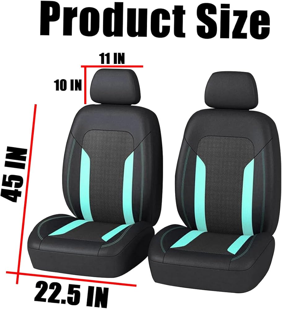 【تشمل العبوة】: سوف تحصل على قطعتين من أغطية المقاعد الأمامية + قطعتين من أغطية مسند الرأس. حجم غطاء المقعد الأمامي 45 بوصة × 22.4 بوصة وغطاء مسند الرأس 11 بوصة × 10.2 بوصة. يتم استخدامها على نطاق واسع في معظم المركبات، مثل السيارات والشاحنات وسيارات الدفع الرباعي والسيارات متعددة الأغراض. يمكنك قياس الحجم قبل الشراء.