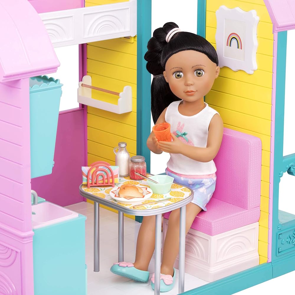 قم بتخزين مطبخ بيت الدمى الخاص بك بأكثر من 20 ملحقًا واستمتع بوجبة إفطار لذيذة كل يوم (تُباع الدمى وبيت الدمى بشكل منفصل)!