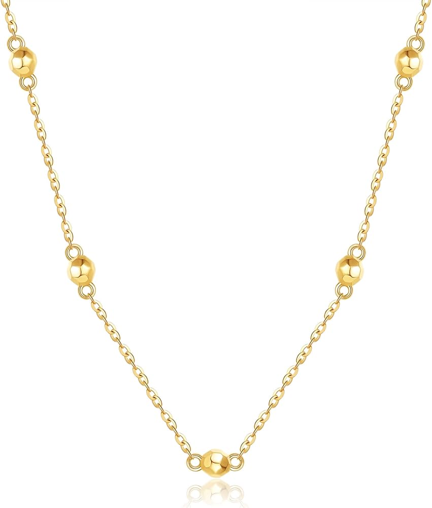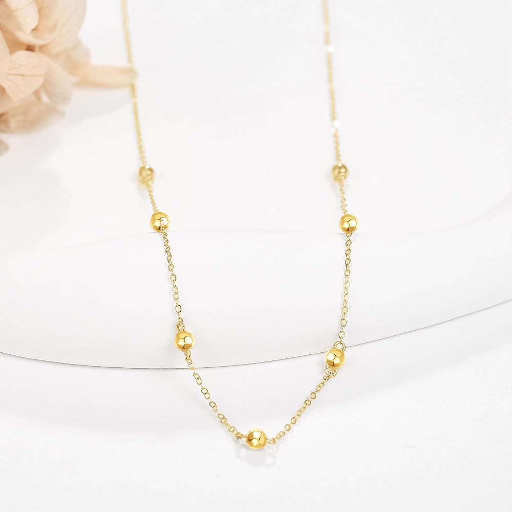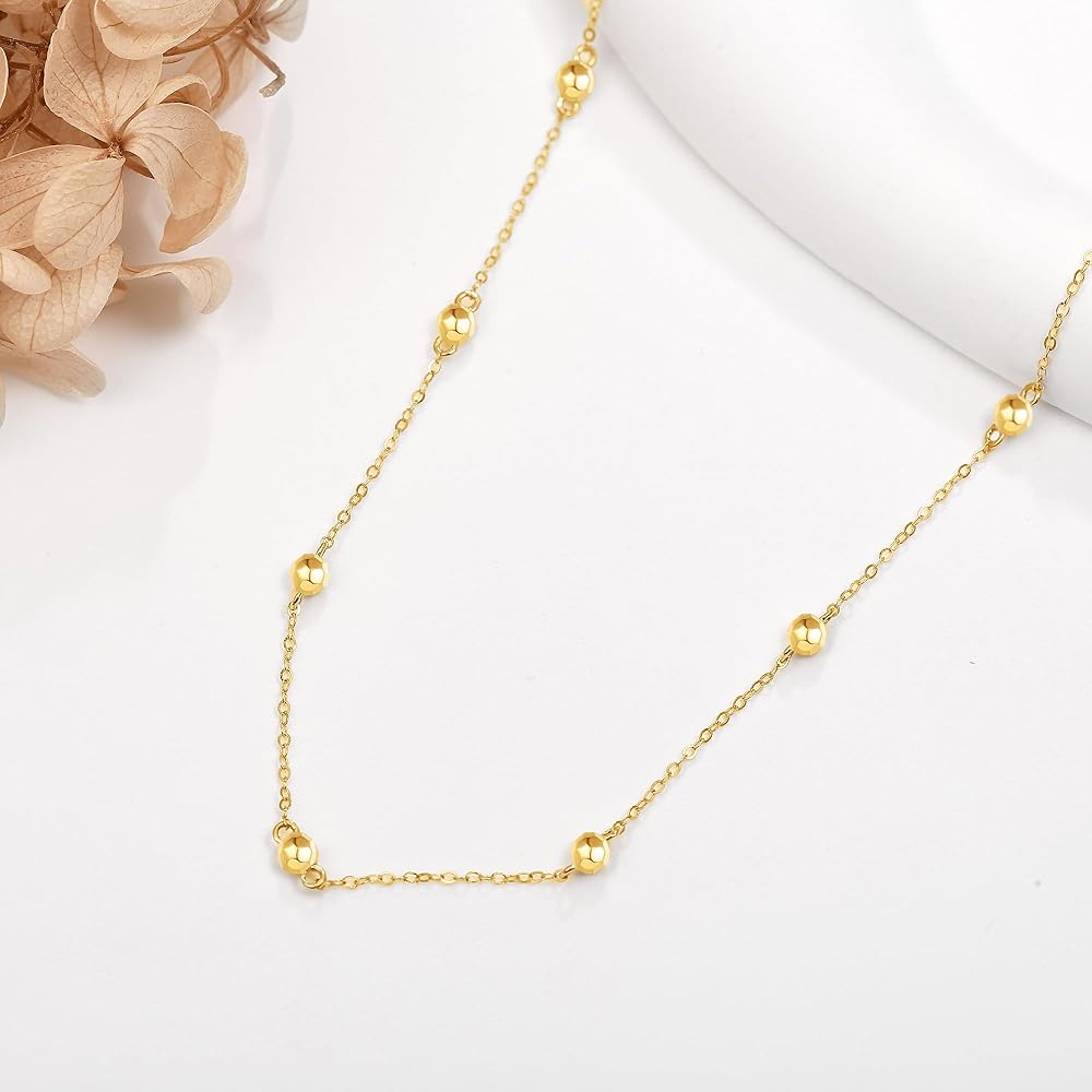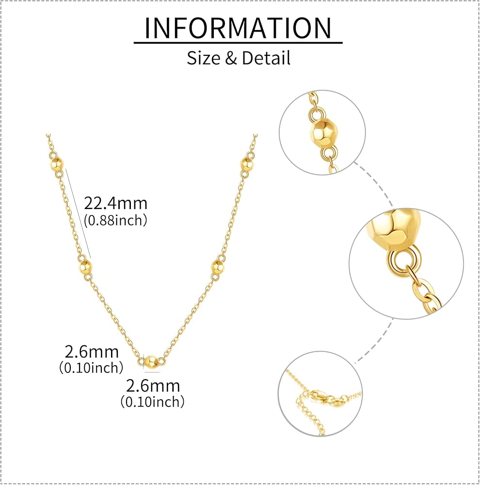 الحجم: (ليست كرة ذهبية صغيرة) الخرزة: 2.6 مم (0.10 بوصة) طول السلسلة: 16+1+1 بوصة موسع قابل للتعديل. الوزن: 1.99 جرام. معبأة في صندوق هدايا أنيق.