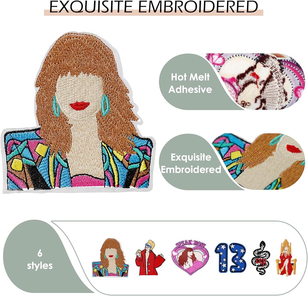 6 قطع من الرقع المطرزة للمغني، يمكن كيها على رقعة الموسيقى، زينة عصرية مضحكة للملابس وحقائب الظهر والسترات والقبعات والجينز، هدايا مثالية للفتيات محبي الموسيقى
