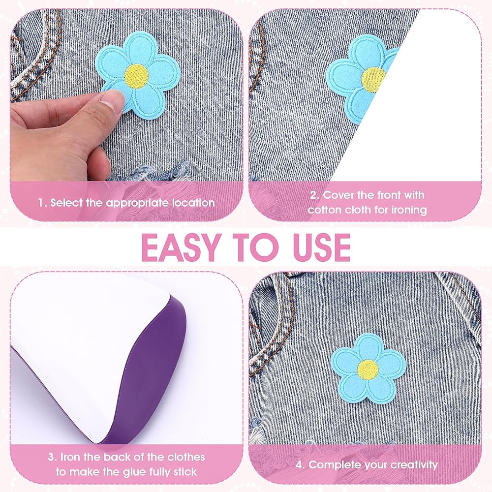 【سهلة الاستخدام】رقعات الإصلاح المزخرفة لدينا سهلة الاستخدام. ما عليك سوى وضع الرقعة على المكان المرغوب فيه، وتغطيتها بقطعة قماش، وكيها عند درجة حرارة 150 درجة مئوية لمدة 15-30 ثانية. ثم اقلب قطعة الملابس وقم بكي الجزء الخلفي، وأخيرًا، اتركها لتبرد لمدة ساعة قبل الاستخدام. (لمزيد من المتانة، نوصي بخياطة الرقع على القماش بعد الكي.)