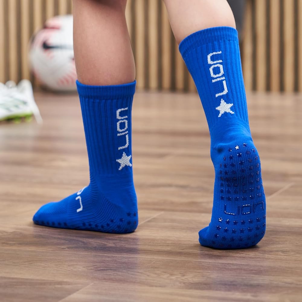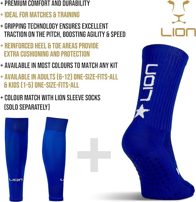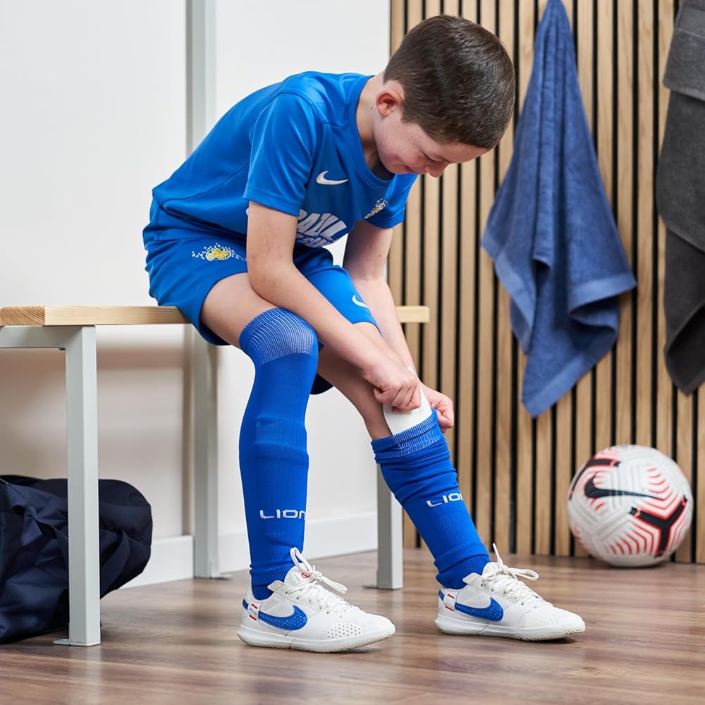 مجموعة Lion Kids لكرة القدم تتضمن جوارب للإمساك وواقيات صغيرة للساق وأكمام جورب - المجموعة المثالية للاعبي كرة القدم الشباب