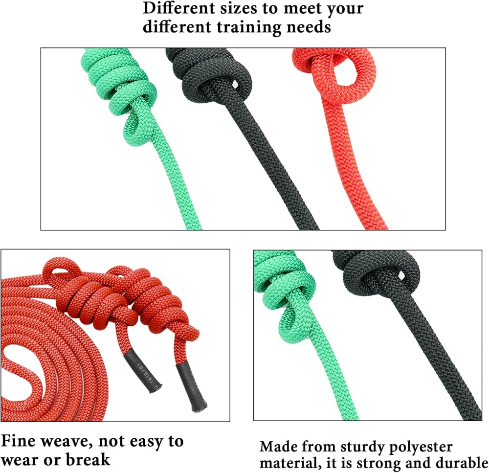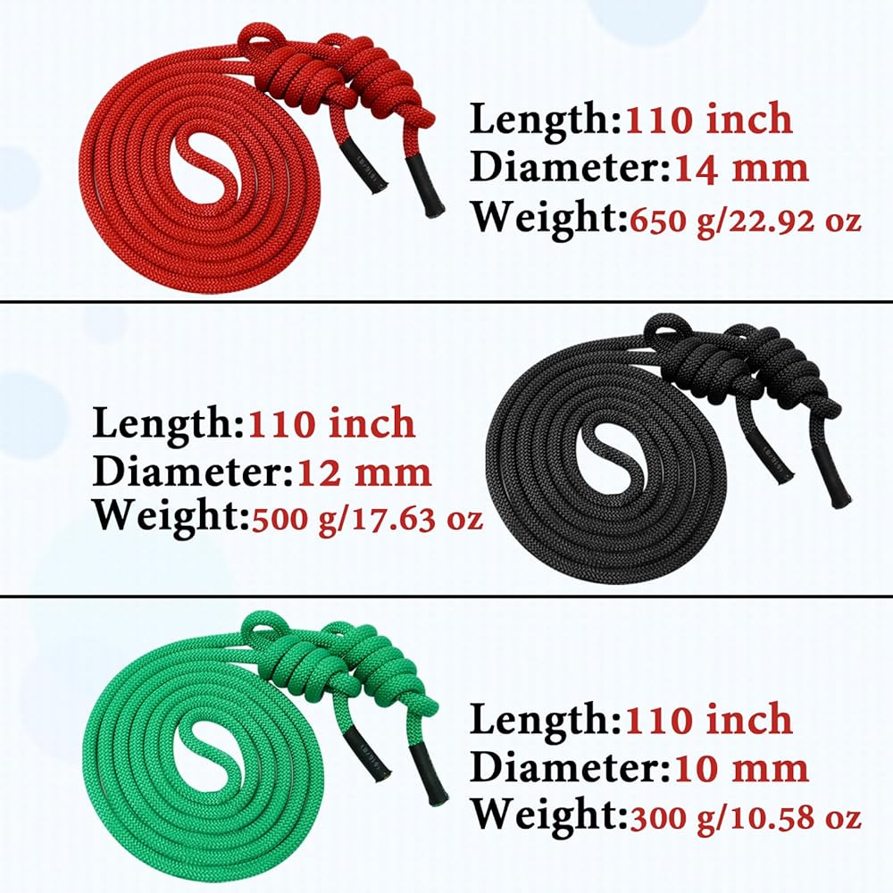 💪【أحجام مختلفة】ثلاثة حبال مرجحة للتمرين بطول 9 أقدام ولها أقطار مختلفة، أخضر 10 مم/0.39 بوصة، تزن تقريبًا. 300 جم/10.58 أونصة، أسود 12 مم/0.47 بوصة، يزن تقريبًا. 500 جم/17.63 أونصة وأحمر 14 مم/0.55 بوصة يزن تقريبًا. 650 جم/22.92 أونصة. مما يسمح لك بالتبديل بين المقاومة الخفيفة والمتوسطة والثقيلة لاستهداف مجموعات العضلات المختلفة وتكثيف التدريبات الخاصة بك.
