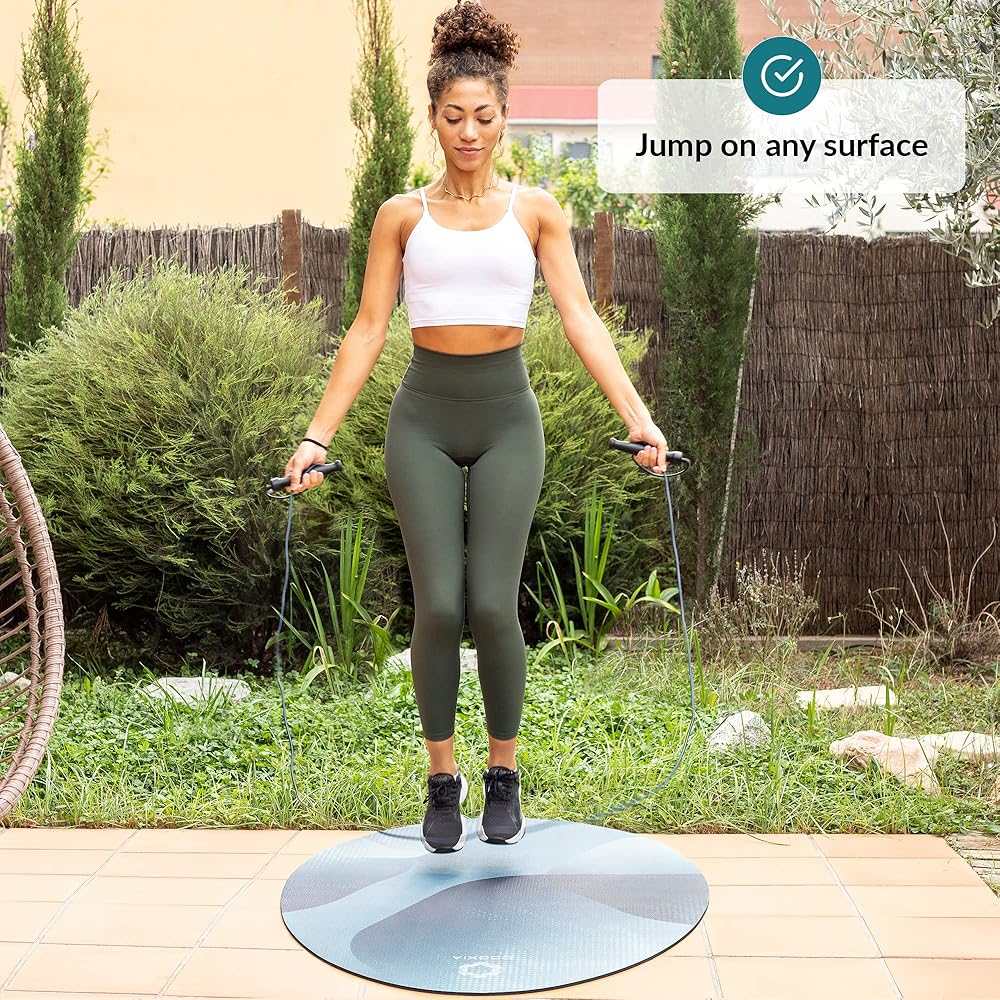 【حافظ على أرضيتك ومعداتك آمنة】سواء كنت تقفز على الحبل في الداخل أو الخارج، على سجاد أو أرضية من الخشب الصلب، فإن سجادة القفز المتينة هذه ستساعد على إطالة عمر معداتك وحماية أرضياتك من أي تآكل. مثالية على كل سطح!