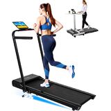 [جهاز مشي قابل للطي 3 في 1] يوفر جهاز المشي المطور القابل للطي ثلاثة أوضاع: وسادة المشي/وضع تحت المكتب مع نطاق سرعة يتراوح من 0.6 إلى 3.8 ميل في الساعة عند طي الرافع، ووضع الجري مع نطاق سرعة يتراوح من 0.6 إلى 7.5 ميل في الساعة عندما يكون يتم رفع الناهض. يوفر المرونة لتلبية احتياجات التمرين المختلفة. يمكنك ضبط السرعة باستخدام جهاز التحكم عن بعد أو لوحة المفاتيح التي تعمل باللمس.