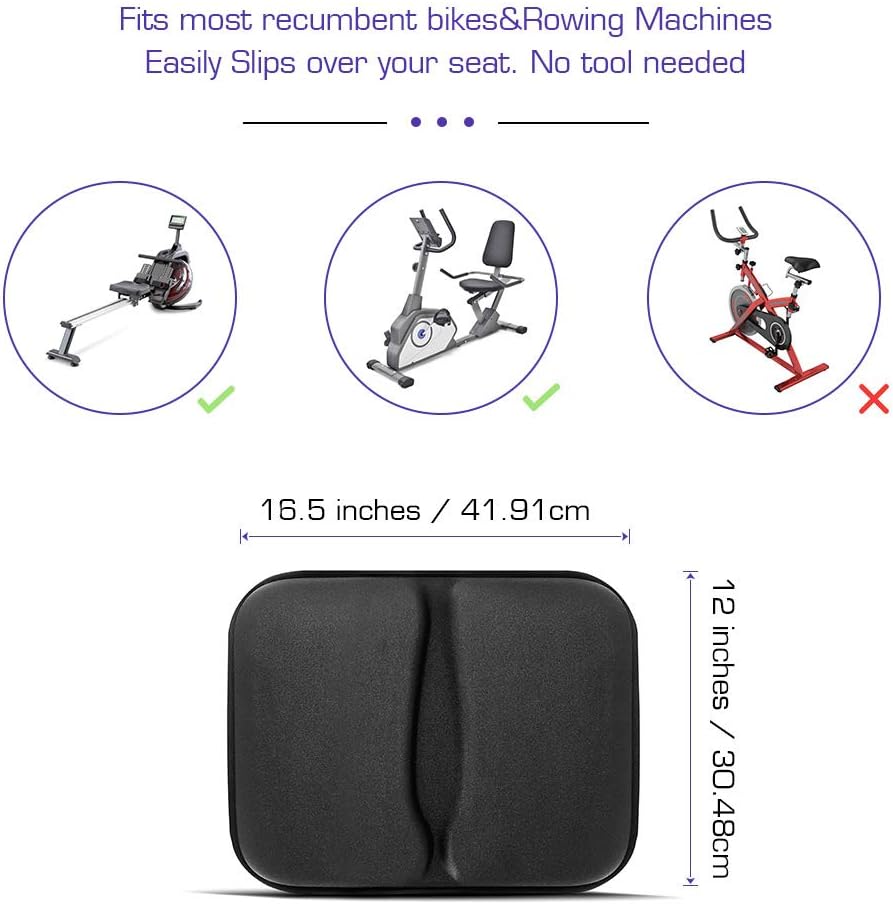 ANZOME غطاء وسادة مقعد دراجة تمرين جل كبير للدراجة المستلقية، غطاء مقعد دراجة مبطن بالفوم واسع لراحة النساء والرجال، 16.5 بوصة × 12 بوصة
