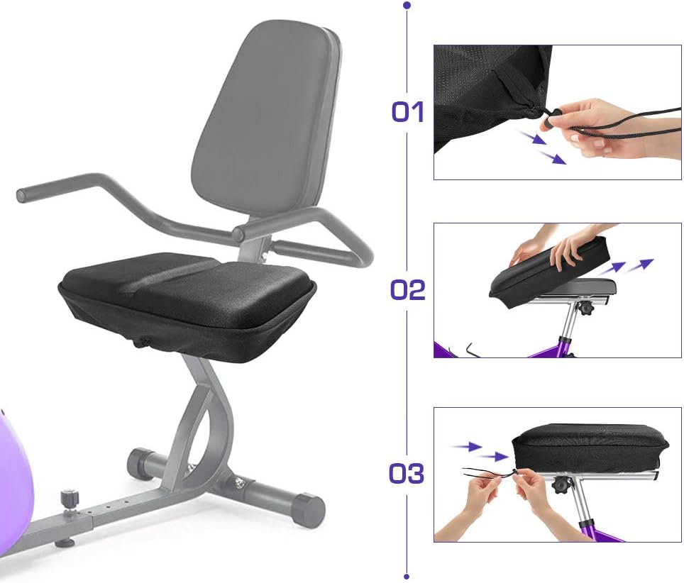 • 【غطاء مقعد تمرين عريض للغاية】: غطاء مقعد الدراجة كبير الحجم من أنزوم مع جل مبطن إضافي يجعله رائعًا لتخفيف البروستاتا وعظم الذيل. تساعدك وسادة مقعد التمرين فائقة النعومة على توديع الألم والاستمتاع بمتعة ركوب سلسلة الدراجة المستلقية الآن