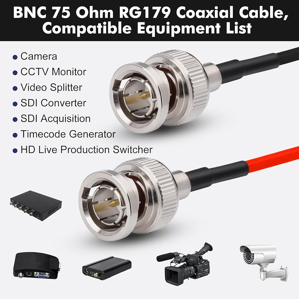 كابل CAPChang BNC كابل محول BNC - كابل محوري RG179 من الدرجة الاحترافية معروف بأداء التدريع الممتاز والتوهين المنخفض.