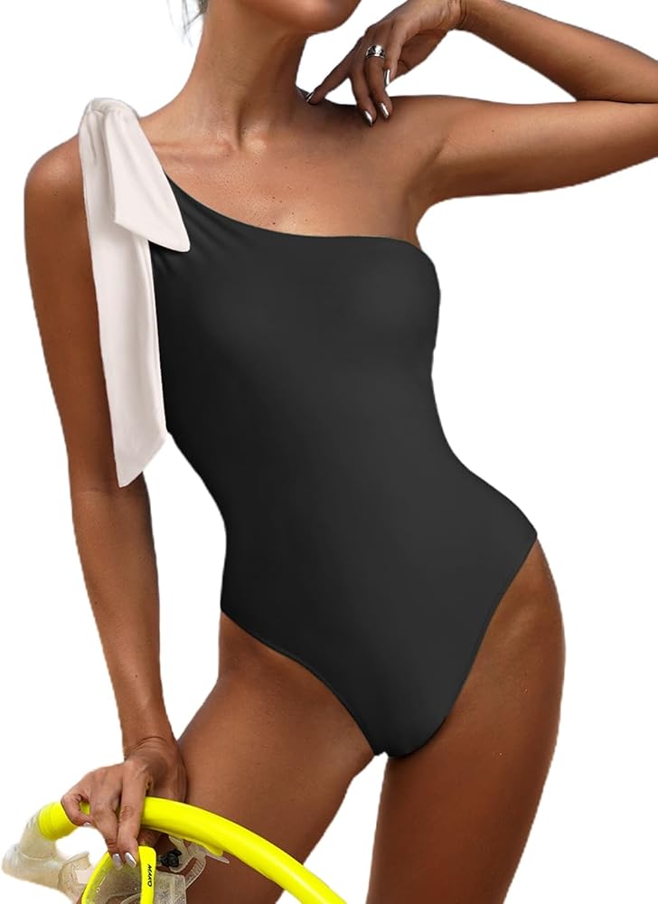 ☀ بدلة سباحة مكونة من قطعة واحدة: تتميز المونوكيني المثيرة بكتف واحد بكتف واحد مع عقدة على شكل فيونكة، وظهر مقصوص وجزء سفلي بتغطية كاملة، مما يمنحك مظهرًا جذابًا وعتيقًا. يتم تشكيل الترقيع من خلال ربطة عنق بألوان مختلفة على الكتف، مما يمنح ملابس السباحة لمسة من الألوان