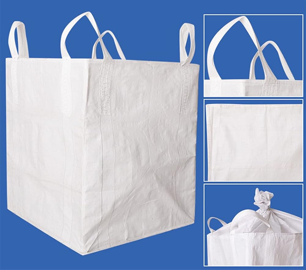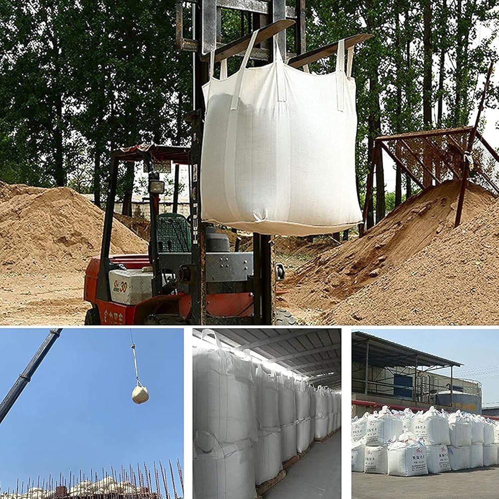 أعلى واق من المطر، أسفل مسطح. 4 حلقات رفع لسهولة النقل أو استخدام الرافعة الشوكية. يبلغ حجم حقيبة FIBC الكبيرة 35 بوصة طولًا × 35 بوصة عرضًا × 43 بوصة ارتفاعًا. سهلة التنظيف وقابلة للطي لسهولة التخزين وإعادة الاستخدام.