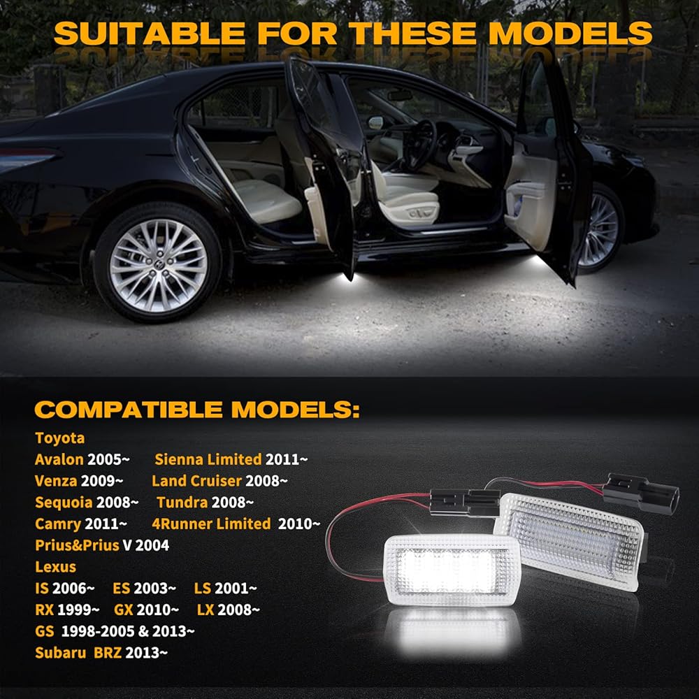 مصباح LED للباب الجانبي ضوء تحذيري متوافق مع T-oyota Avalon Sequoia Sienna Venza Camry Tundra Prius 4Runner Lexus IS ES GS LS RX GX LX Subaru LED ضوء الترحيب، مدعوم بـ 24 LED