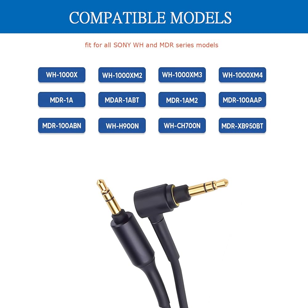 سلك كابل Aux لسماعات الرأس WH-1000X متوافق مع سماعات Sony MDR-XB950BT MDR-1000X WH-1000XM2 WH-1000xm3 WH-CH700N MDR-100ABN MDR-1A MDR-1ADAC MDR-XB950N1 اللاسلكية