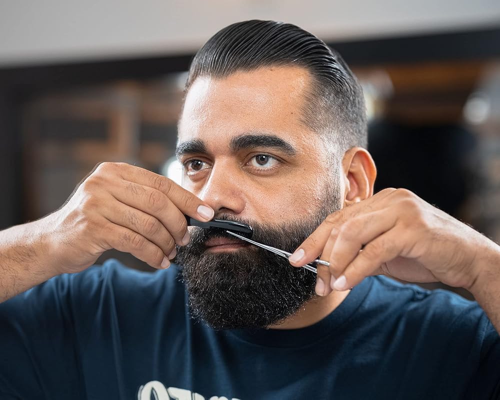 Includes 1 Beard and Mustache Shears, 1 Handle Mustache Comb, 1 Protective Travel Case