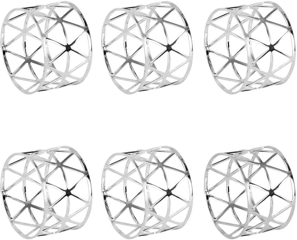 مجموعة حلقات مناديل دائرية من مادة فضية مكونة من 6 قطع، مناسبة لمعظم المناديل.