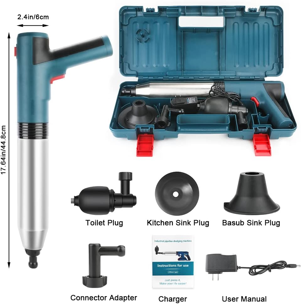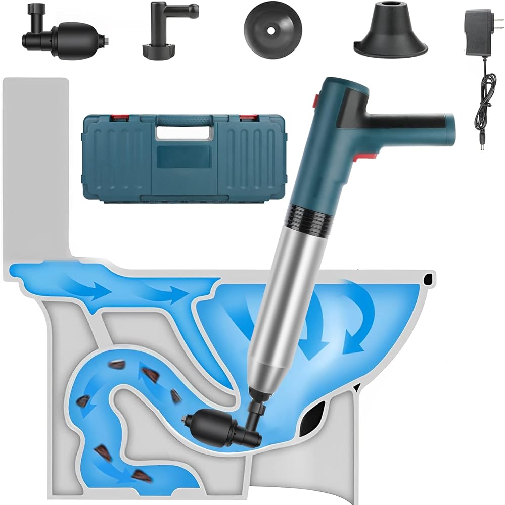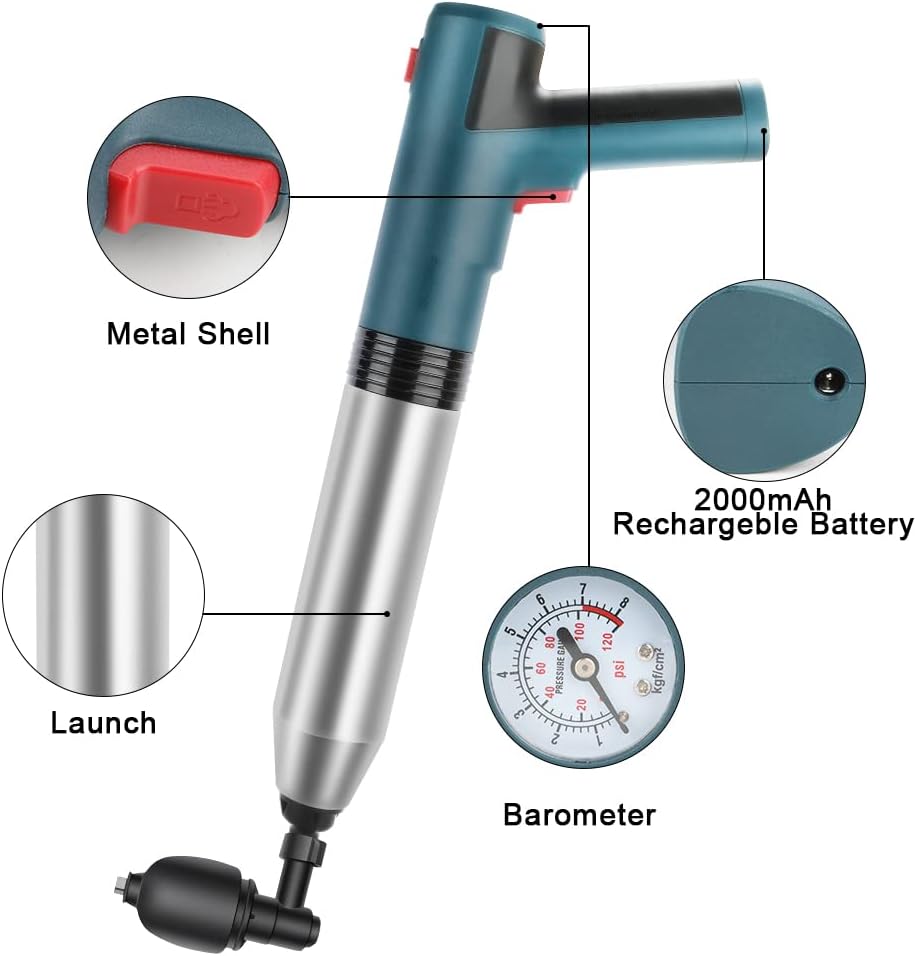 مكبس مرحاض كهربائي مكبس هواء للمرحاض، مكبس مرحاض كهربائي عالي الضغط، مسدس تفريغ هواء عالي الضغط، أفضل مزيل للسدادات للمراحيض مع المرحاض، الحمام، تصريف الأرضية، المجاري، الأنابيب