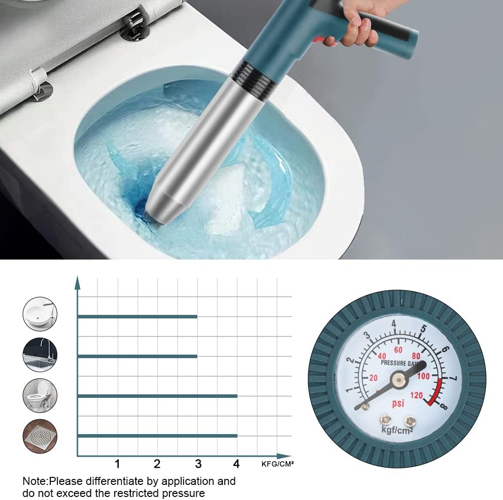 • 【نصائح للضغط في الوقت الحقيقي】 يتيح لك مؤشر ضغط الهواء الخاص بمزيل انسداد الثعبان معرفة الضغط في الوقت الحقيقي من 0 إلى 10 بار أثناء النفخ، حتى تتمكن من التحكم بدقة في الأنشطة الهوائية وقوى التشغيل، وتجنب الرش والأضرار الناجمة. بالقوة المفرطة، لا يمكن استخدام مكبس المرحاض الكهربائي هذا لإزالة الانسداد الناتج عن البلاستيك الصلب أو الزجاج أو المواد المعدنية أو بقايا البناء.