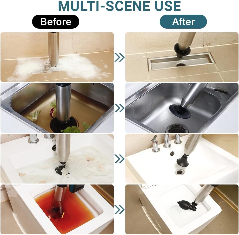 • 【تطبيق Wde】 يأتي مكبس الهواء لمزيل المرحاض مع عدة رؤوس مختلفة غير مسدودة، يمكنك تغيير رأس المكبس الكهربائي وفقًا للخياطة، ويمكن استخدامه في المرحاض، وحوض الاستحمام، والدش، والمطبخ، والمغاسل، وحمام السباحة، ومقالي القرفصاء، تصريف الأرضية والأنابيب المسدودة وما إلى ذلك. يمكن حل جميع أنواع الانسداد الناتج عن القمامة والشعر والقماش في ثوانٍ بمساعدة علم الخصائص الهوائية عالي الضغط.