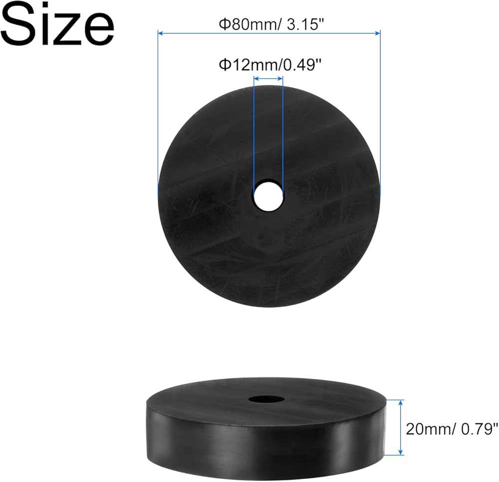 الحجم: 4 قطع من وسادات تخميد الاهتزاز بفواصل مطاطية، 80 مم OD × 12 مم معرف × 20 مم سمك.
