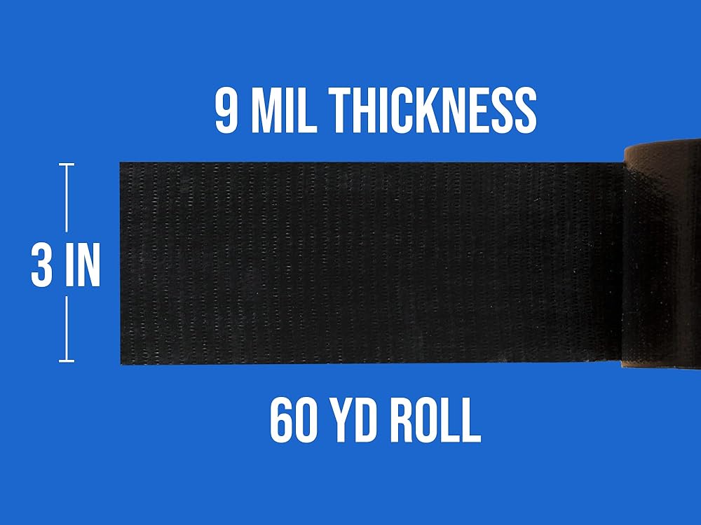 𝐒𝐢𝐳𝐞 - يبلغ حجم هذا الشريط اللاصق الأسود العريض 3 × 60 ياردة وسمك 9 مل.