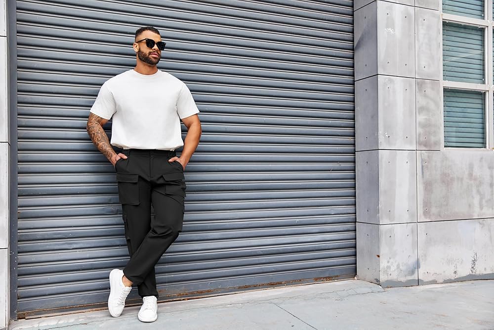 التصميم: تتميز هذه السراويل الرجالية الكاجوال بجيبين جانبيين وأربعة جيوب كارجو وجيبين خلفيين، مما يحافظ على هاتفك أو مفاتيحك أو محفظتك من السقوط أثناء الركض أو الجري.