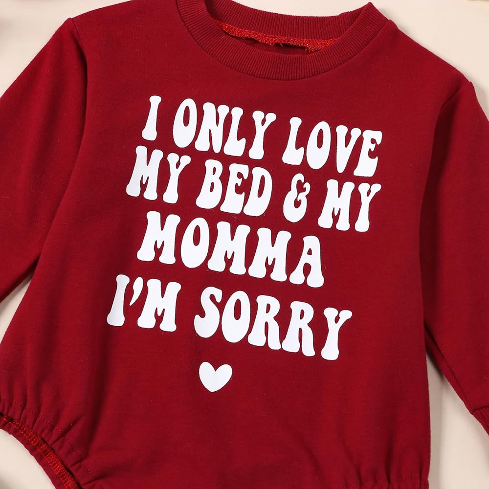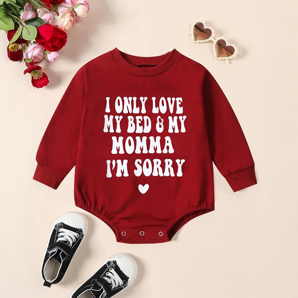 💜【لماذا تشتريه】: أرقى ملابس عيد الحب للفتيات الصغيرات، مصممة بأكمام طويلة، ورقبة دائرية، وملابس ربيعية، أنا فقط أحب سريري وأمي، طباعة حروف I'm SORRY، رومبر لحديثي الولادة، رومبر طويل الأكمام، رقبة دائرية طويلة رومبير بأكمام، زر للإغلاق، بدلة قطعة واحدة كبيرة الحجم، قطعة واحدة لعيد الحب لحديثي الولادة. زي عيد الحب الرومانسي والجميل للفتيات، مليء بالحب لطفلك العسل.