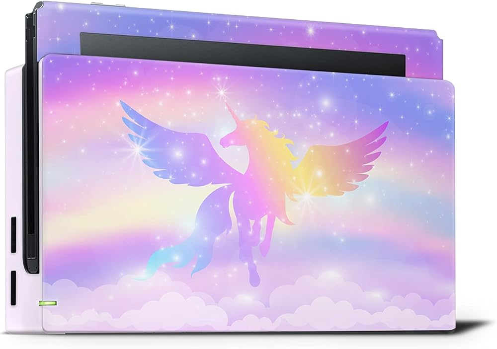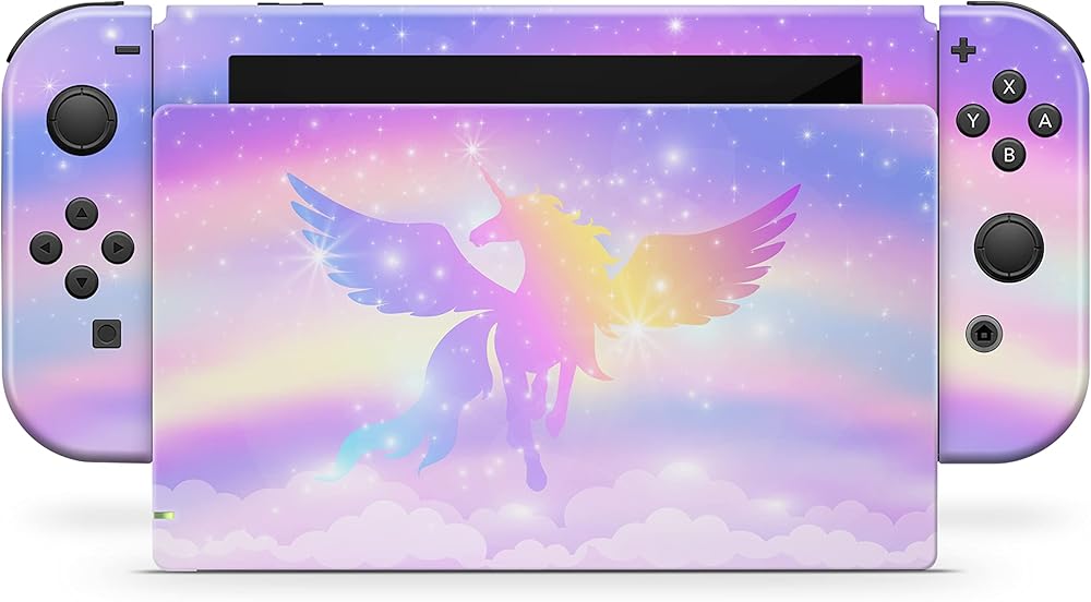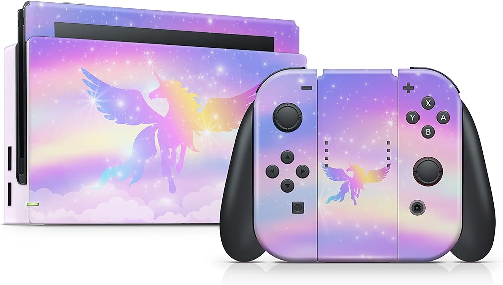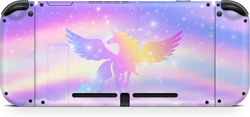 تصميم TACKY DESIGN Unicorn Skin متوافق مع ملصق الرسوم المتحركة Nintendo Switch Skins، مجموعة ملصقات Flowe من الفينيل 3M - Switch Skin متوافق مع Joy Con، Console، Dock، ملصق ملتف بالكامل