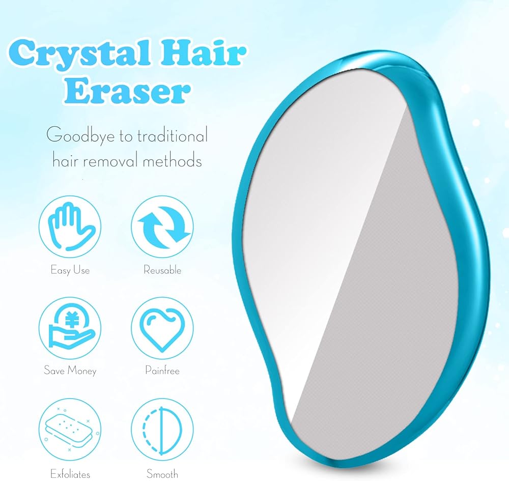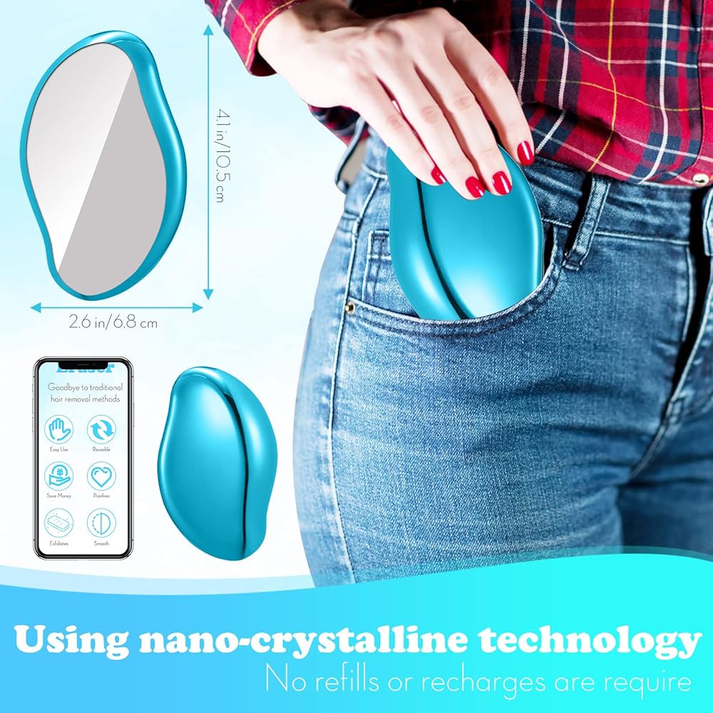 ممحاة شعر كريستالية، قابلة لاعادة الاستخدام لازالة الشعر بدون الم، اداة سحرية لازالة الشعر بدون الم، اداة سحرية لازالة الشعر والذراعين والساقين، قابلة للغسل، للنساء والرجال - ازرق