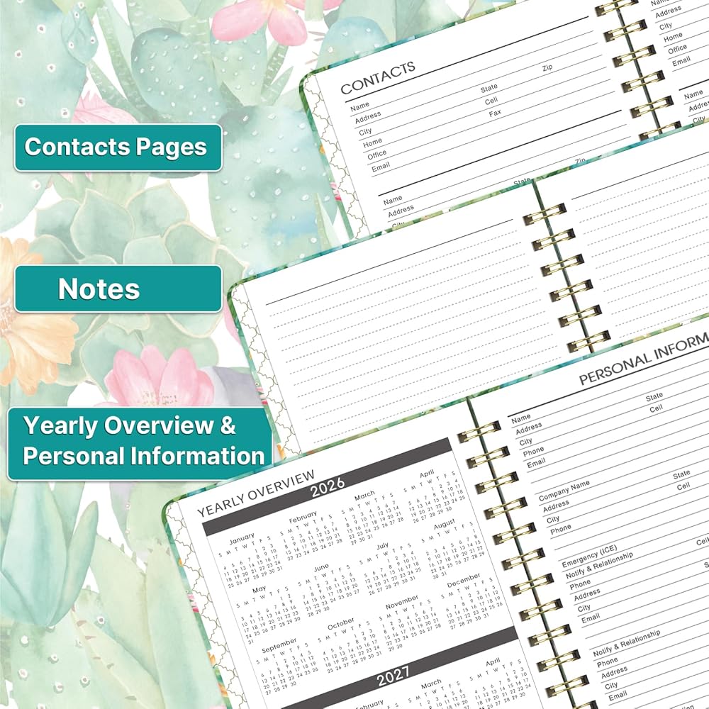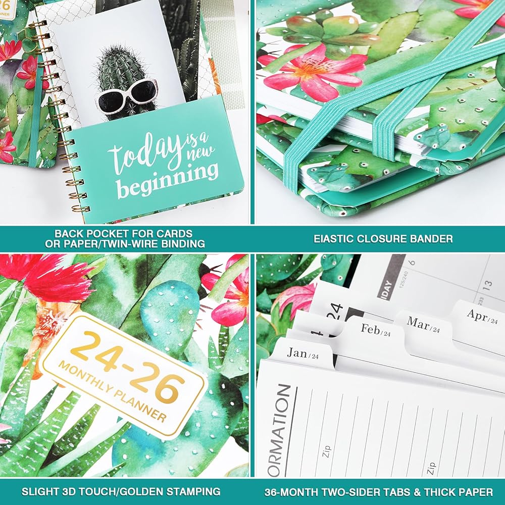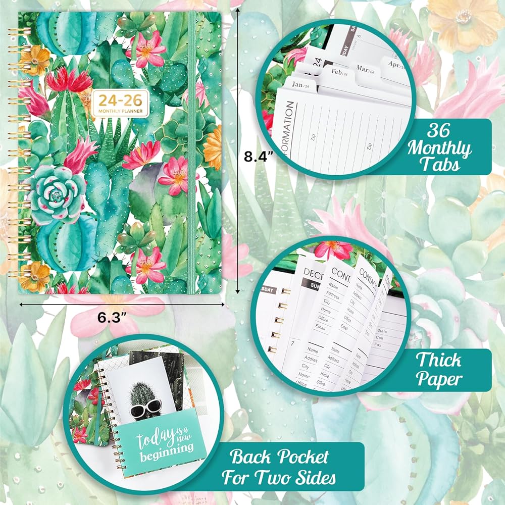 🍀 تصميم المحتوى - يغطي المخطط الشهري لمدة 3 سنوات 36 صفحة تقويم شهرية + 4 صفحات جهات اتصال مهمة + 7 صفحات اتصال + 5 صفحات كلمة مرور + 30 صفحة ملاحظات + نظرة عامة سنوية 2023-2026 + صفحة معلومات شخصية.