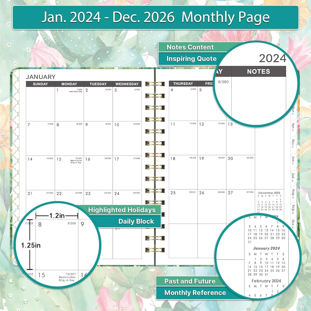 🍀 مخطط شهري 2024-2026 - المخطط الشهري 2024-2026، يناير 2024 - ديسمبر 2026، يضم 36 شهرًا من الصفحات الشهرية مع تواريخ جوليان وعطلات مميزة.