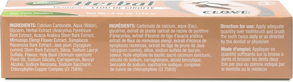 انتعاش معزز بالقرنفل: يستخدم معجون الأسنان العشبي الخاص بنا قوة القرنفل الطبيعية التي تم اختبارها عبر الزمن، والتي تشتهر بحكمتها العشبية التي تعود إلى قرون في العناية بالفم. استمتع بانتعاش لا مثيل له طوال اليوم يجعلك تشعر بالثقة في أي موقف.
