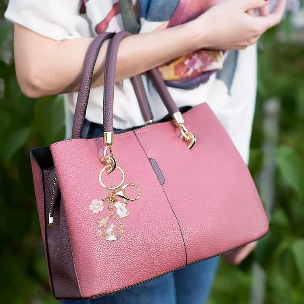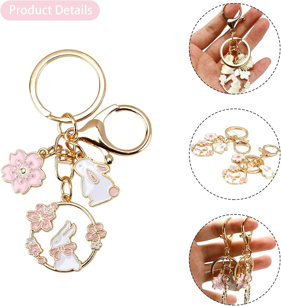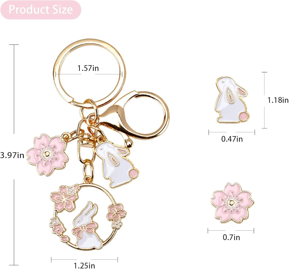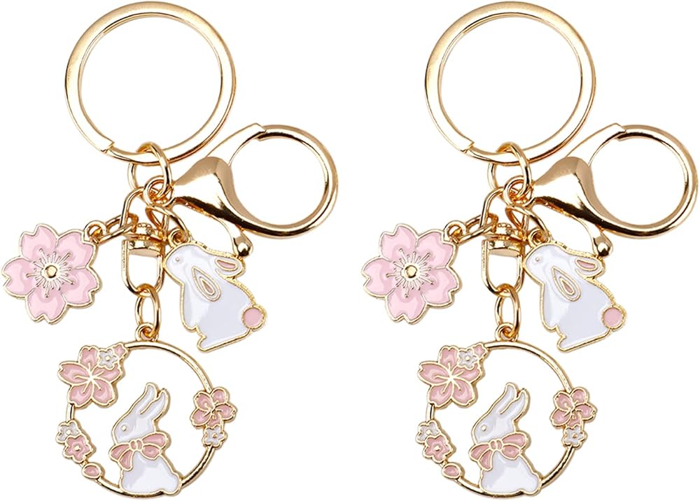 2 قطعة سلسلة مفاتيح رائعة على شكل أرنب لطيف على شكل أرنب سلسلة مفاتيح معدنية على شكل قطرة زيت مع زهر أرنب وزهر الكرز لحقيبة الظهر/سلسلة المفاتيح/المحفظة/المحفظة