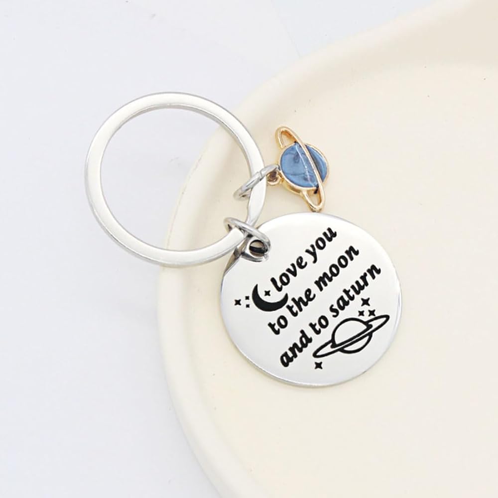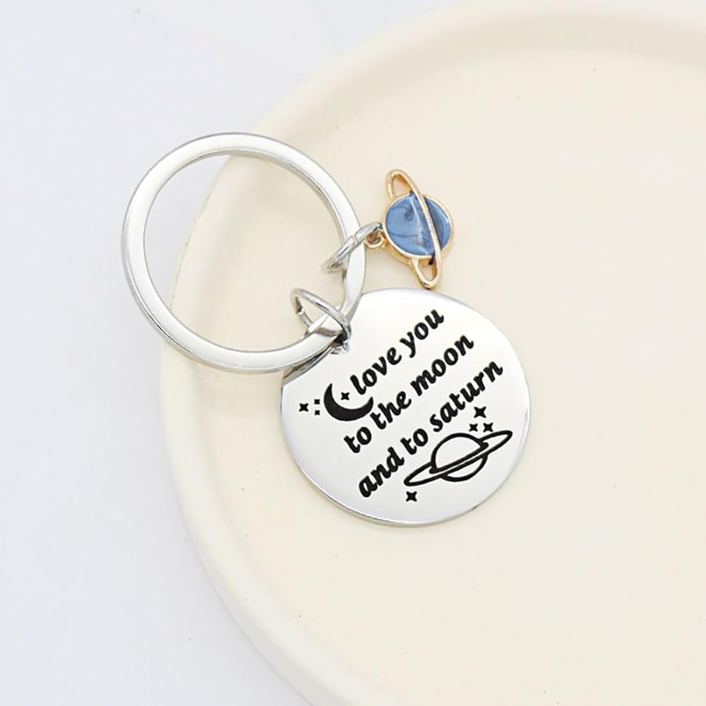سلسلة مفاتيح Moon Saturn Keychain لمحبي الموسيقى والمغنية والأغنية المستوحاة من المعجبين هدية أحبك إلى القمر وإلى زحل