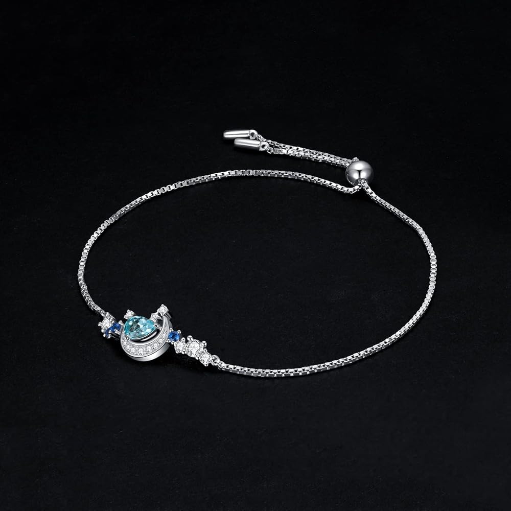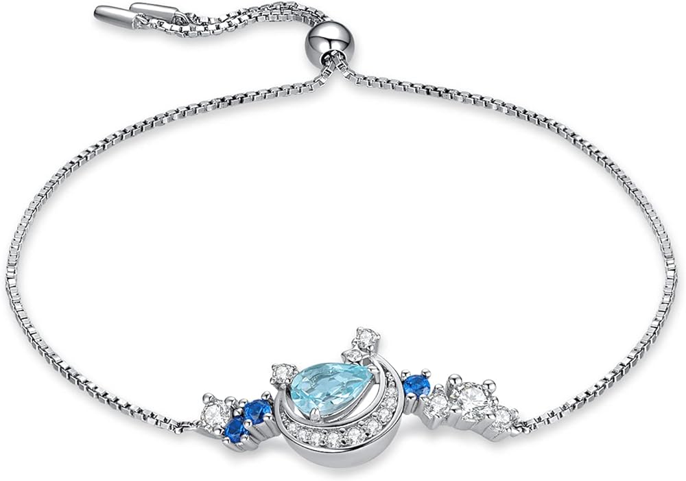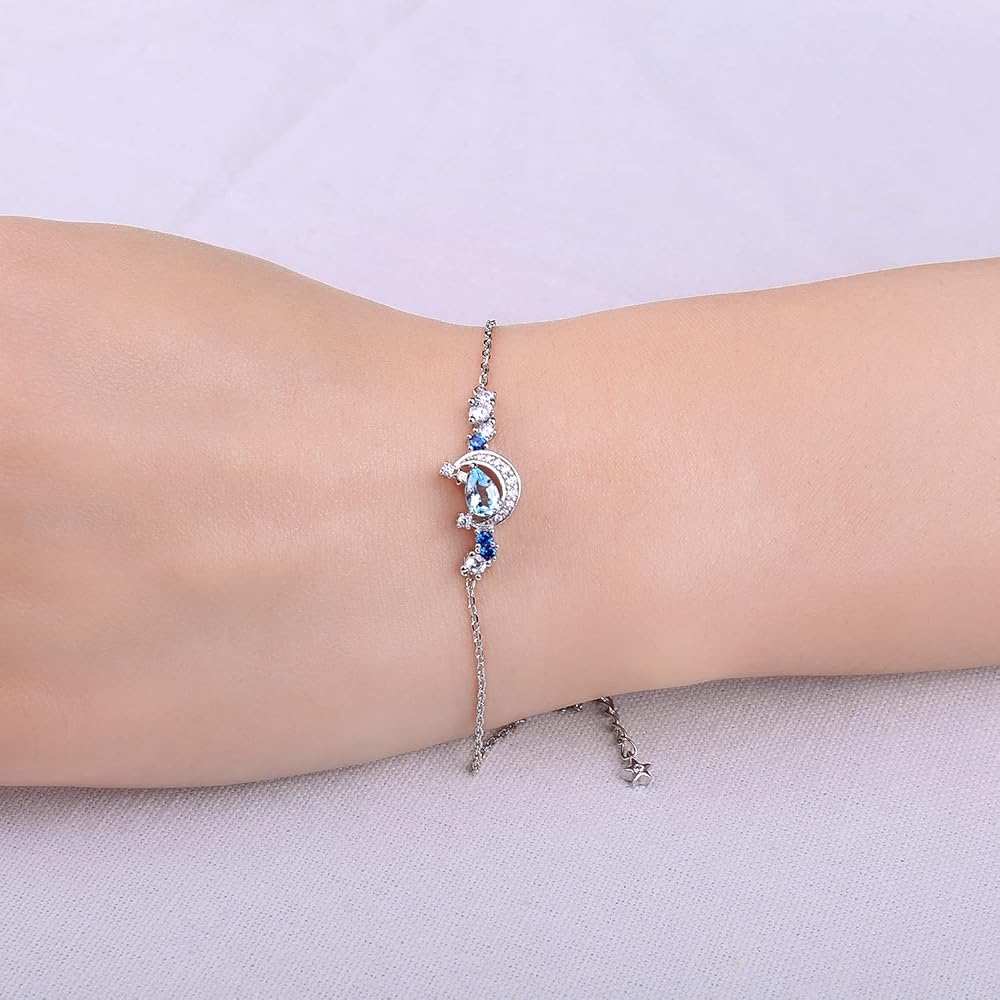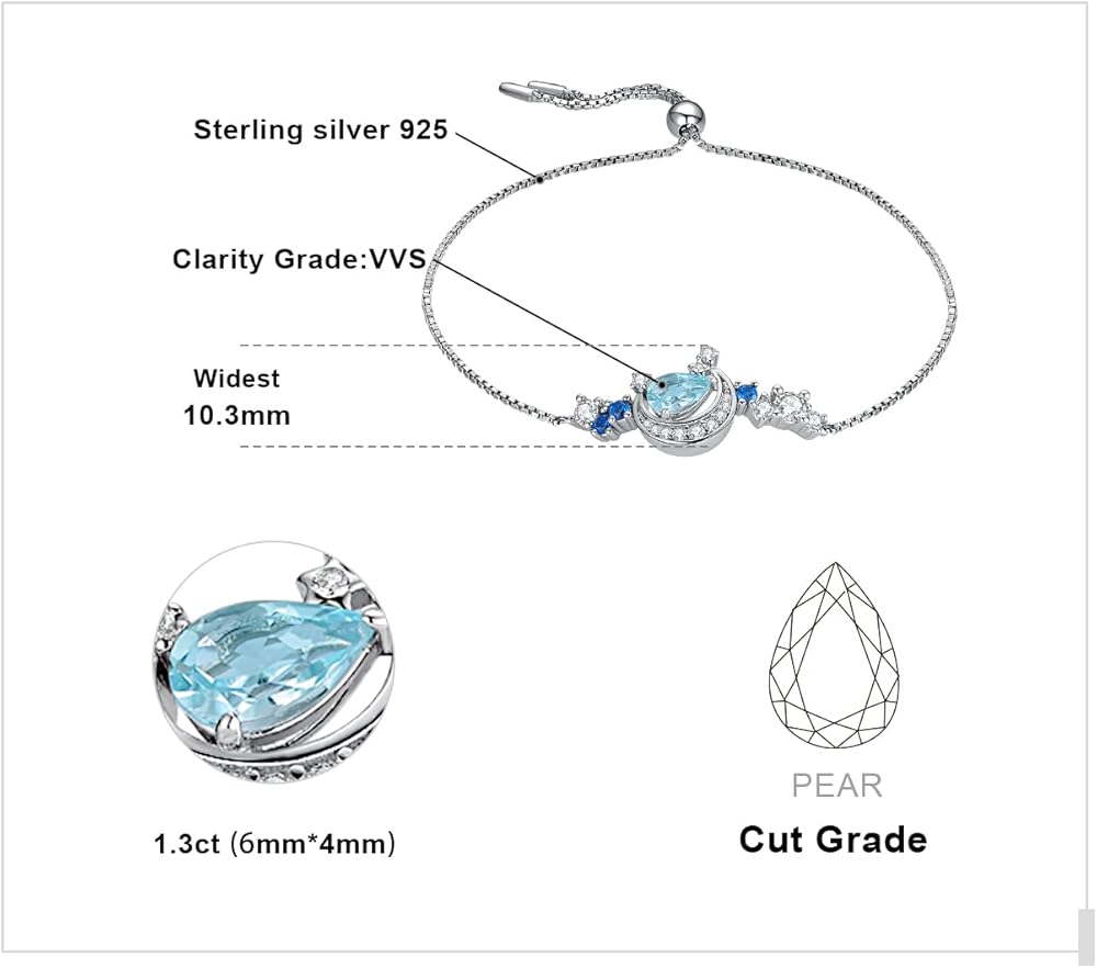 JewelryPalace Moon Star 2.2ct الكمثرى قطع حقيقية السماء الزرقاء توباز خلق الياقوت قابل للتعديل رابط بولو سوار للنساء، 14K الذهب مطلي 925 سوار الفضة الاسترليني لها، مجموعات المجوهرات الأحجار الكريمة