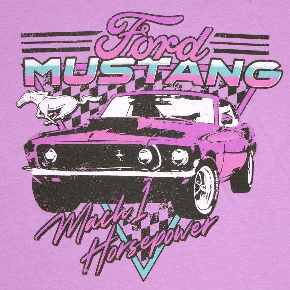تي شيرت Ford Mustang Retro Mach 1 حصان للفتيات برقبة دائرية وأكمام قصيرة، تي شيرت Retro Cars Ford للفتيات