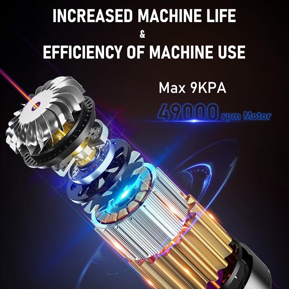 【شفط قوي 9 كيلو باسكال 】تتميز مكنسة السيارة المحمولة بقدرة شفط قوية 9 كيلو باسكال، وهي مناسبة للأعمال المنزلية اليومية لتنظيف الغبار. قوة الخرج: يوفر المحرك القوي بقوة 130 واط شفطًا قويًا يصل إلى 9000 باسكال، والذي يمكنه إزالة بقايا الطعام والجسيمات وشعر الحيوانات الأليفة بسرعة وسهولة حول المنزل أو في السيارة. يعد تشغيل الهاتف المحمول اللاسلكي بالفراغ الرطب/الجاف أكثر ملاءمة.