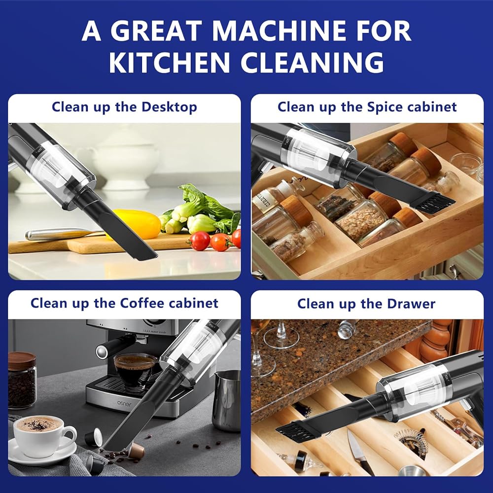 [مكنسة كهربائية متعددة الوظائف] توفر المكانس الكهربائية المحمولة 1 * فرشاة أرضية، 1 * فوهة فرشاة، 1 * فوهة مشقوقة، يمكن استخدام هذه الأدوات العملية لتنظيف المناطق التي يصعب الوصول إليها. يمكن أن تكون المكنسة الكهربائية المحمولة مكنسة كهربائية للكمبيوتر المحمول، أو مكنسة كهربائية مكتبية، أو مكنسة كهربائية يدوية للسيارة، أو البيانو، أو منزل الحيوانات الأليفة، أو تنظيف مكتب المكتب، وما إلى ذلك.