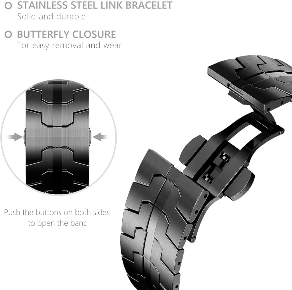 [مشابك قابلة للطي] يحتوي سوار الرابط هذا على قفل فراشة مخصص يمكن طيه بسلاسة بداخله. مشبك النشر مخفي ويمكن فتحه بنقرة بسيطة على الزرين الجانبيين، دون أي أدوات خاصة.