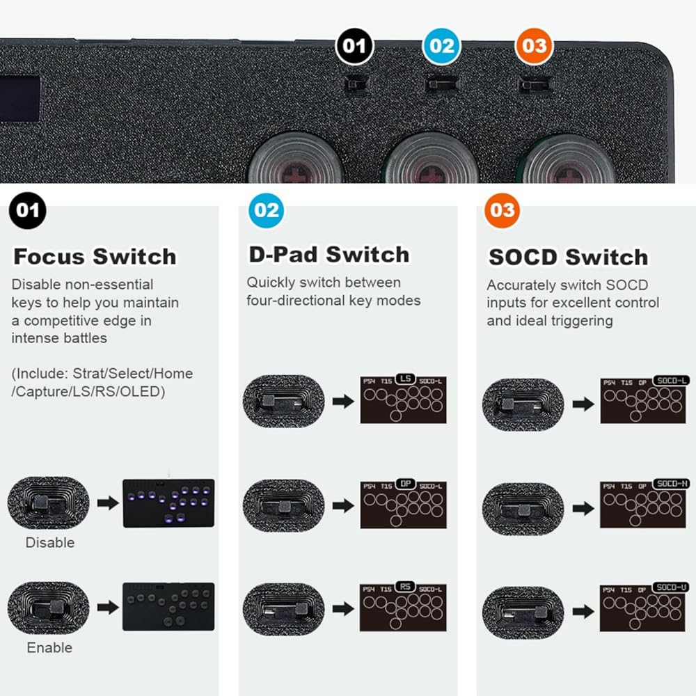لوحة مفاتيح للألعاب، عصا أركيد للتحكم في الألعاب فلات بوكس ألترا - تدعم شاشة SOCD وOLED، مفاتيح التبديل الميكانيكية، مناسبة لأجهزة الكمبيوتر/PS3/PS4/PS5/Switch مع TURBO