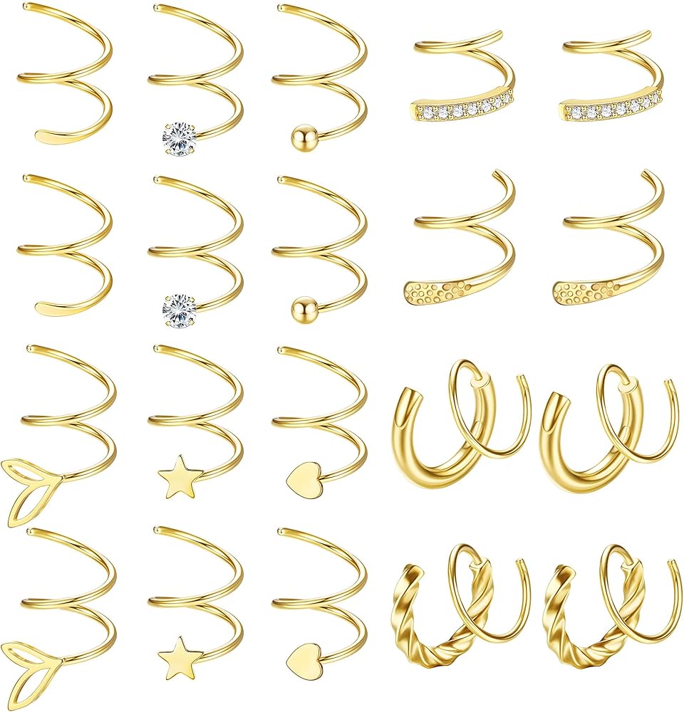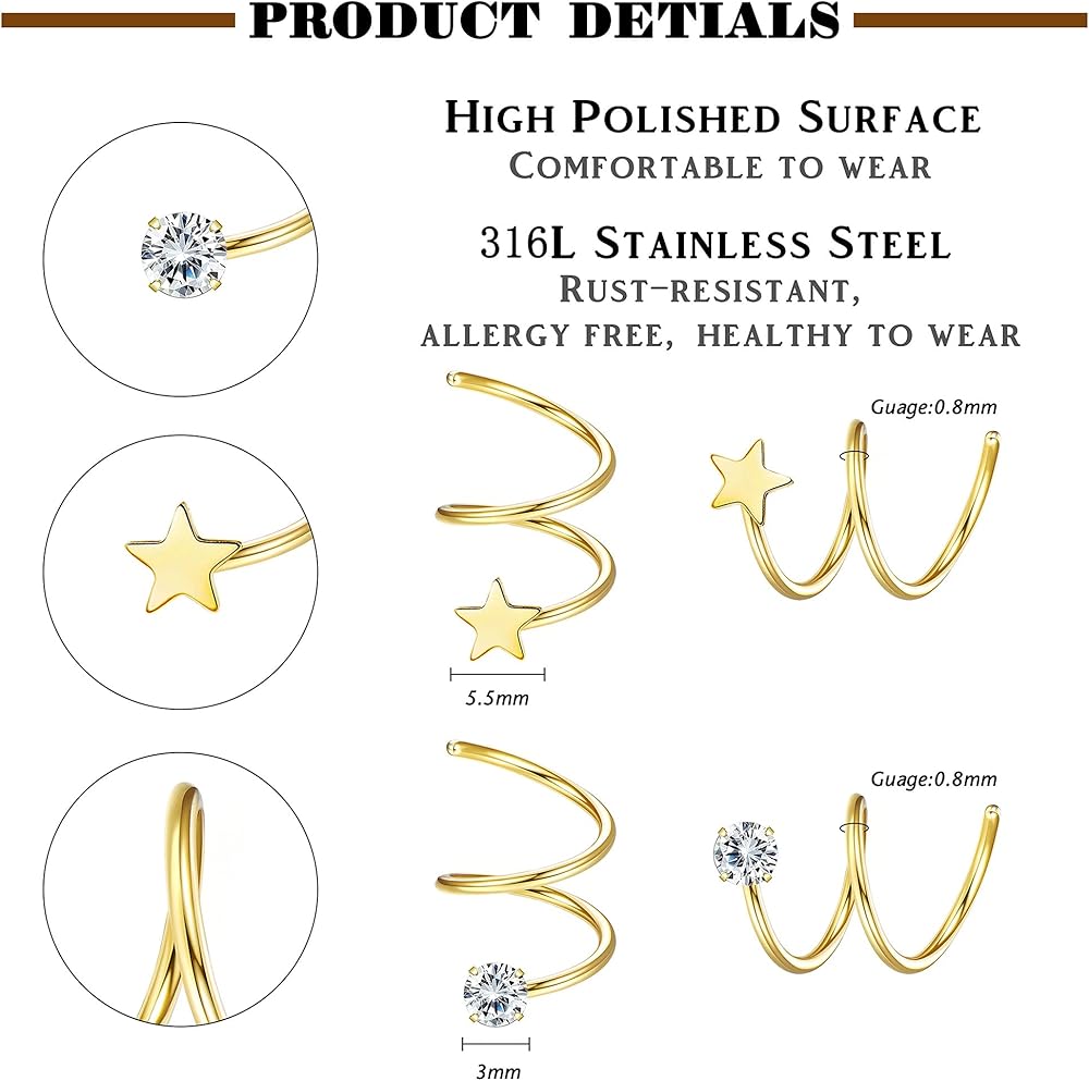 🆒【لا حاجة إلى ثقب ثانٍ】هذه الأقراط الحلزونية المزدوجة تزيل القلق من الاقتران معًا، بشكل أساسي حلقين في واحد. ببساطة قم بلفها في ثقب واحد واحصل على مظهر الأقراط المثقوبة المزدوجة. تلتف هذه الأقراط العصرية في مكانها لتخلق وهمًا بوجود طوق مزدوج.
